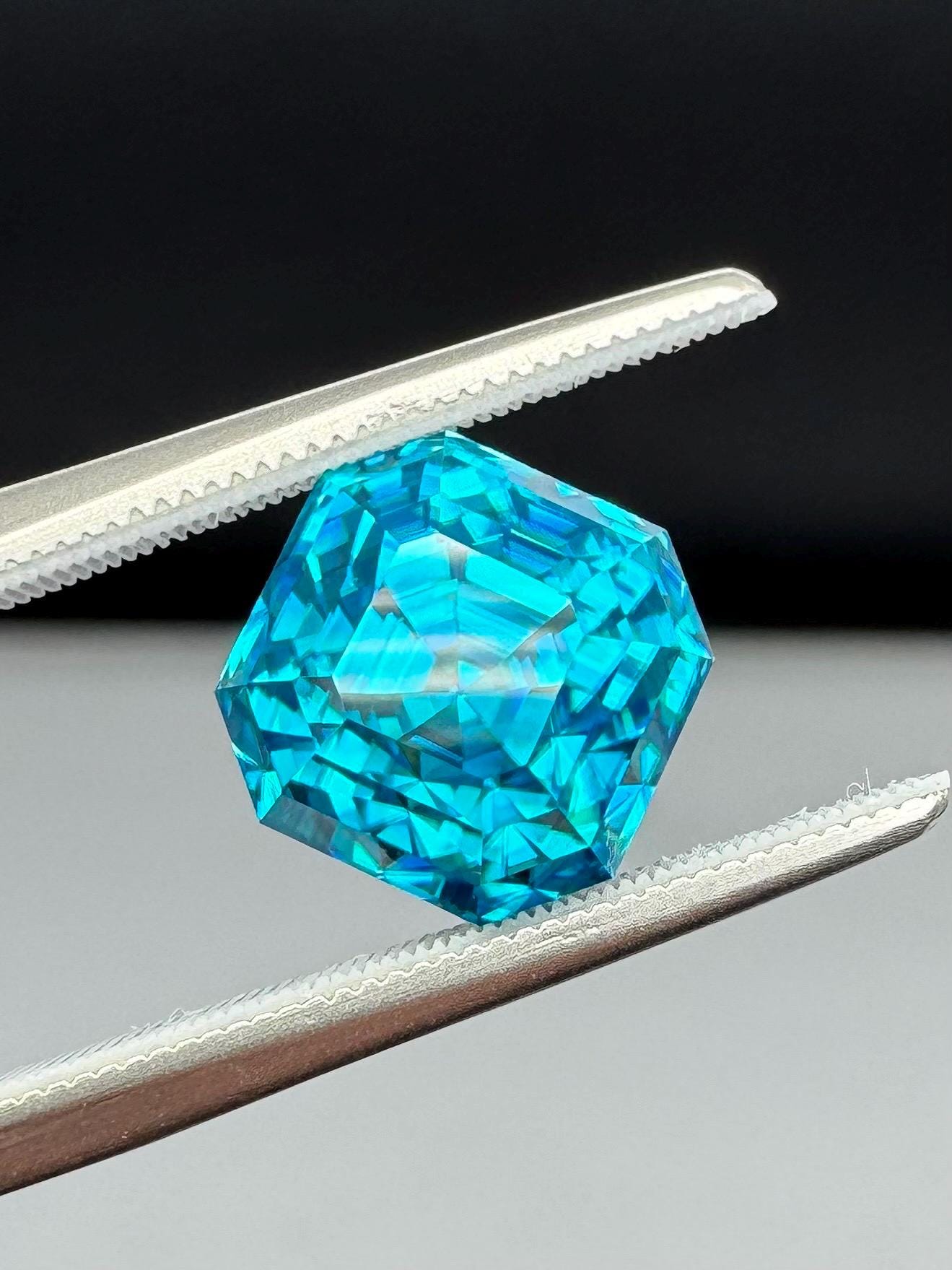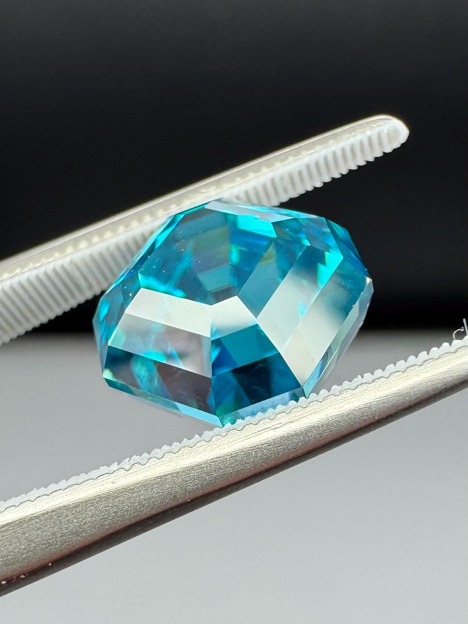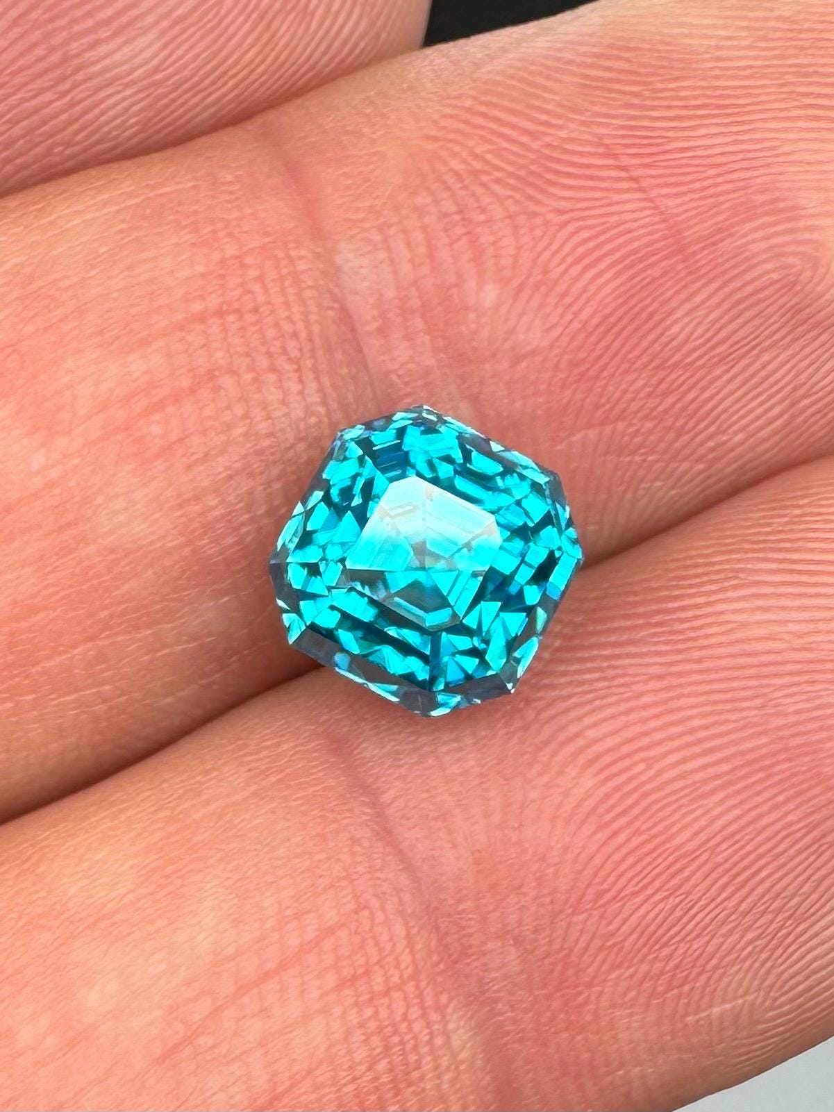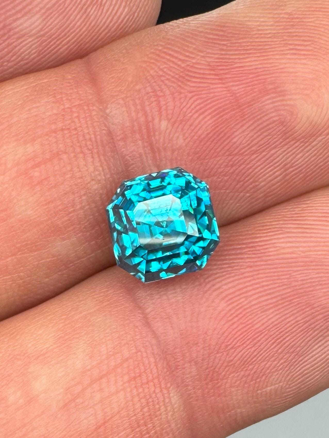 Arguably the best zircon I've had the opportunity to cut or seen for that matter. A precision asscher cut on this natural Zircon. Heat treated as all blues are. Blue Zircon is a single source stone that only comes from Cambodia.