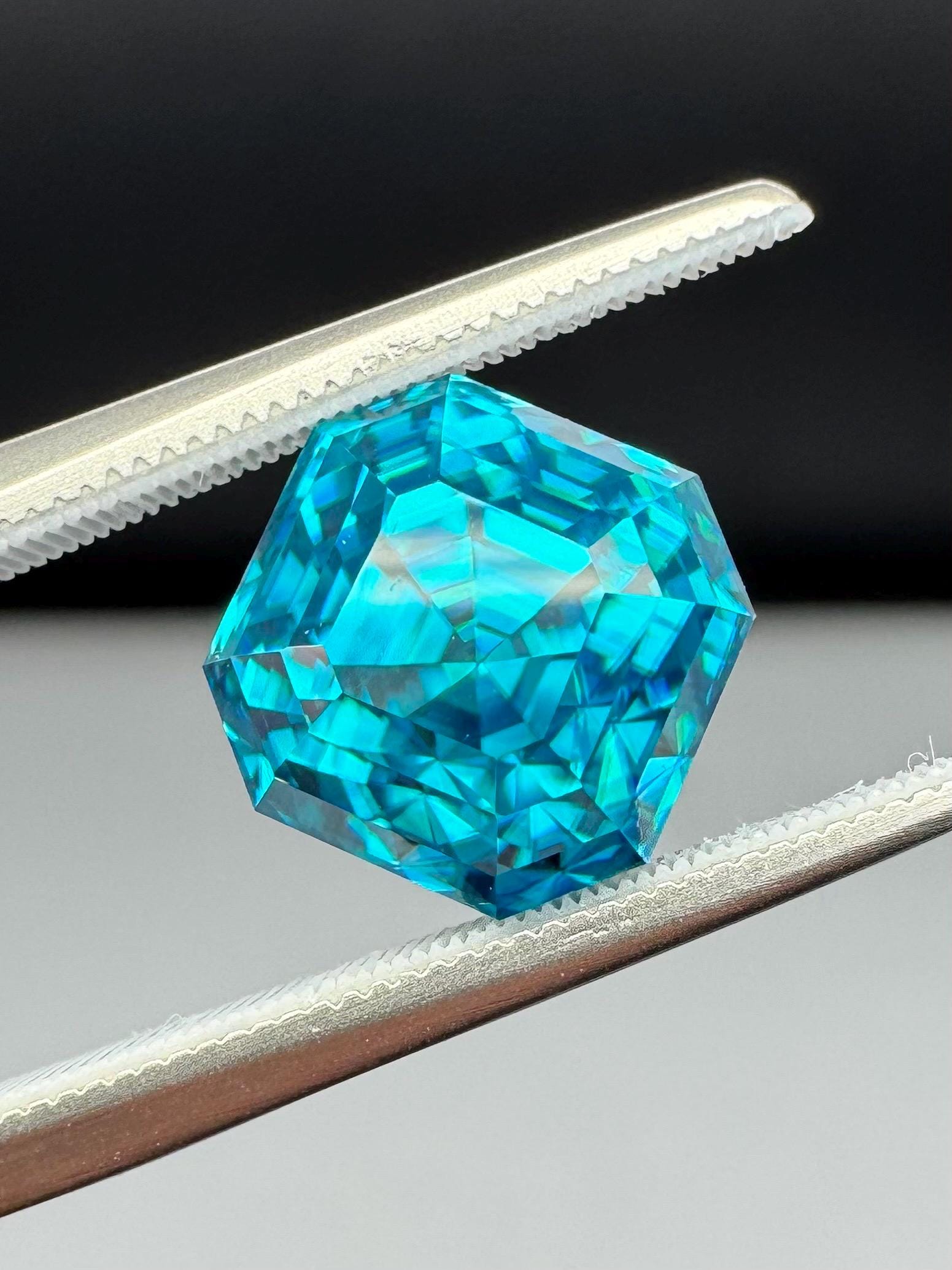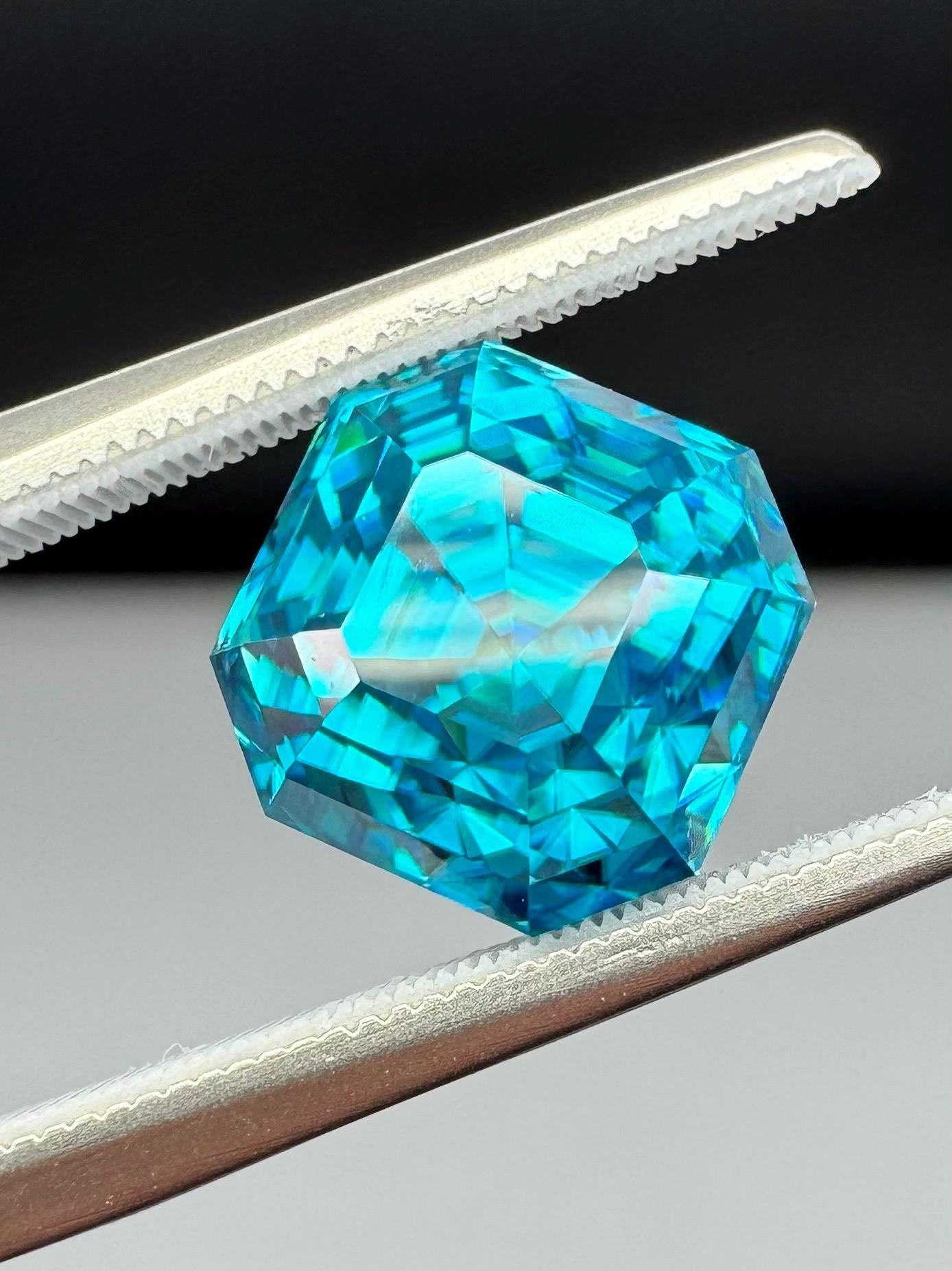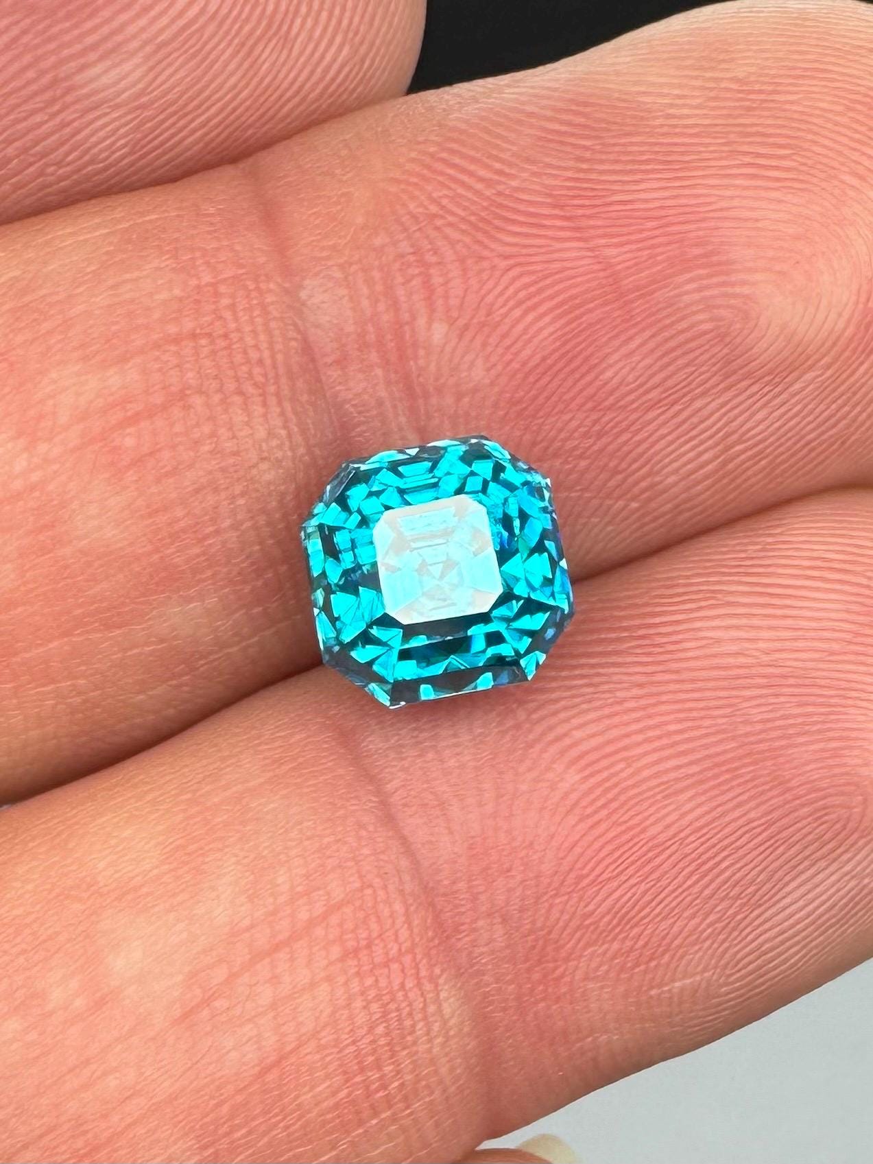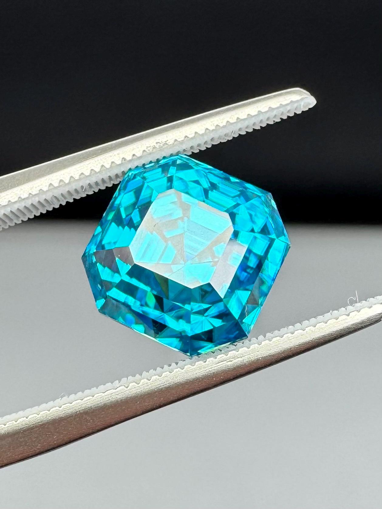 Arguably the best zircon I've had the opportunity to cut or seen for that matter. A precision asscher cut on this natural Zircon. Heat treated as all blues are. Blue Zircon is a single source stone that only comes from Cambodia.