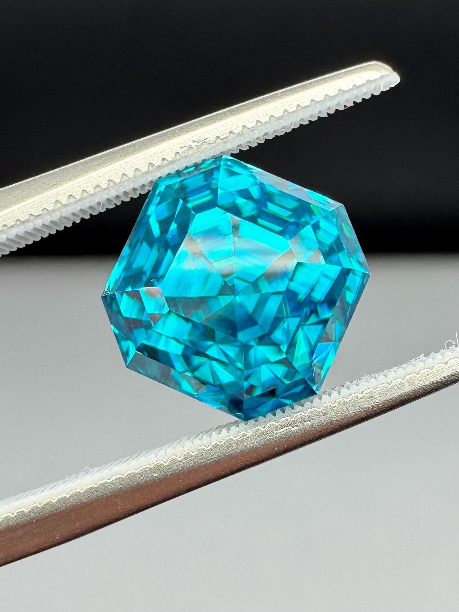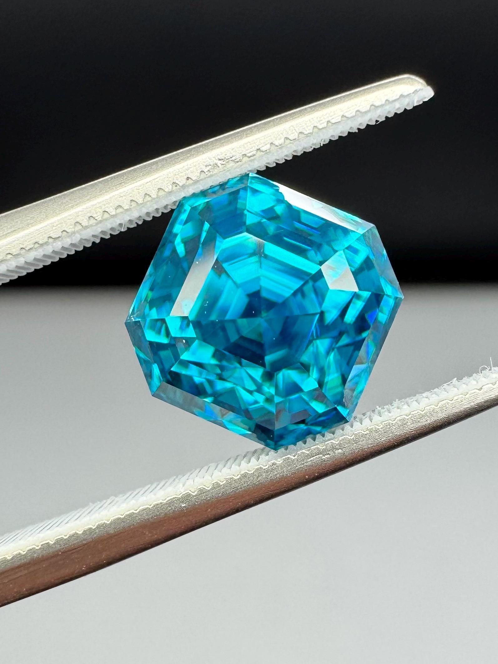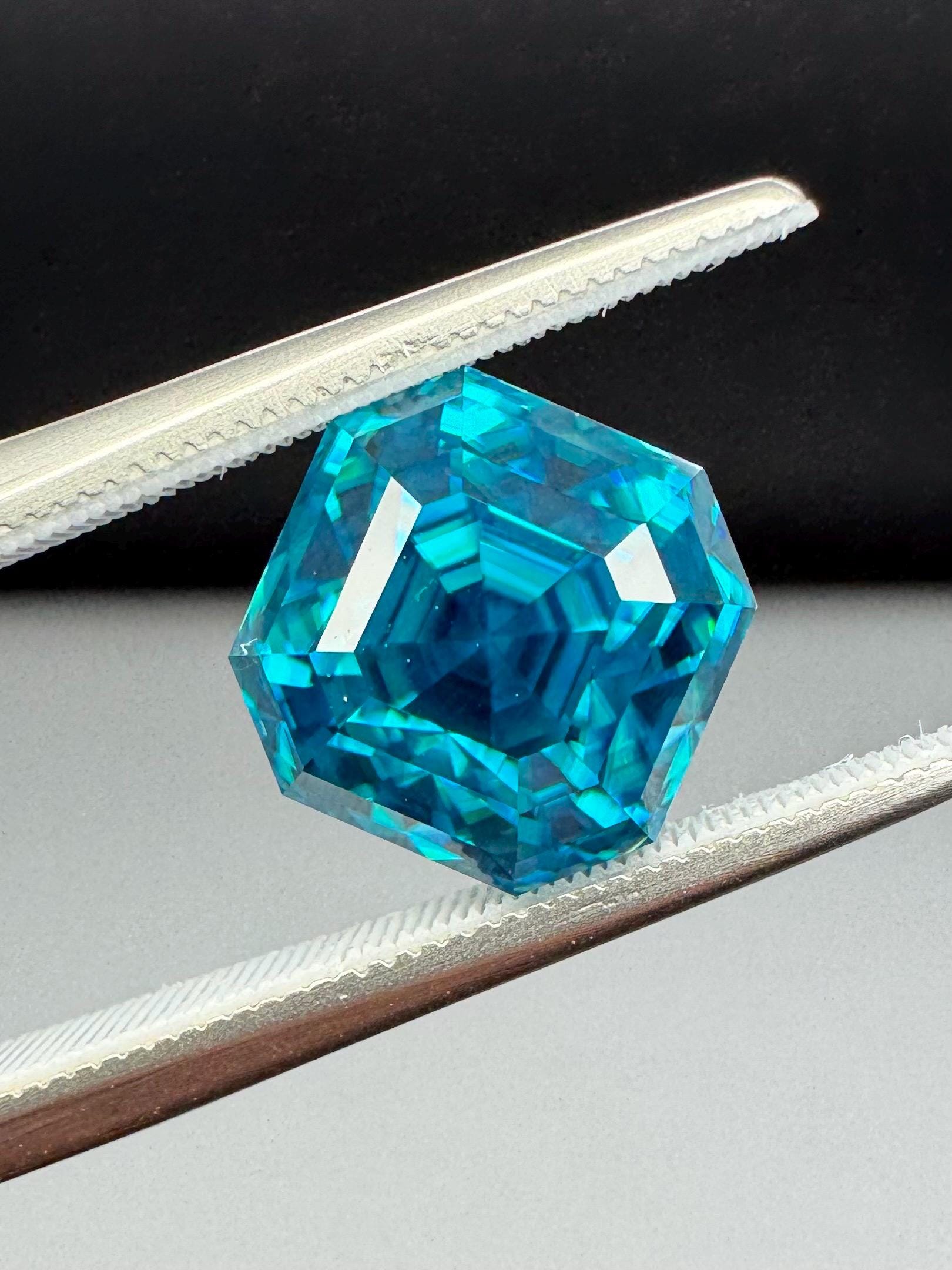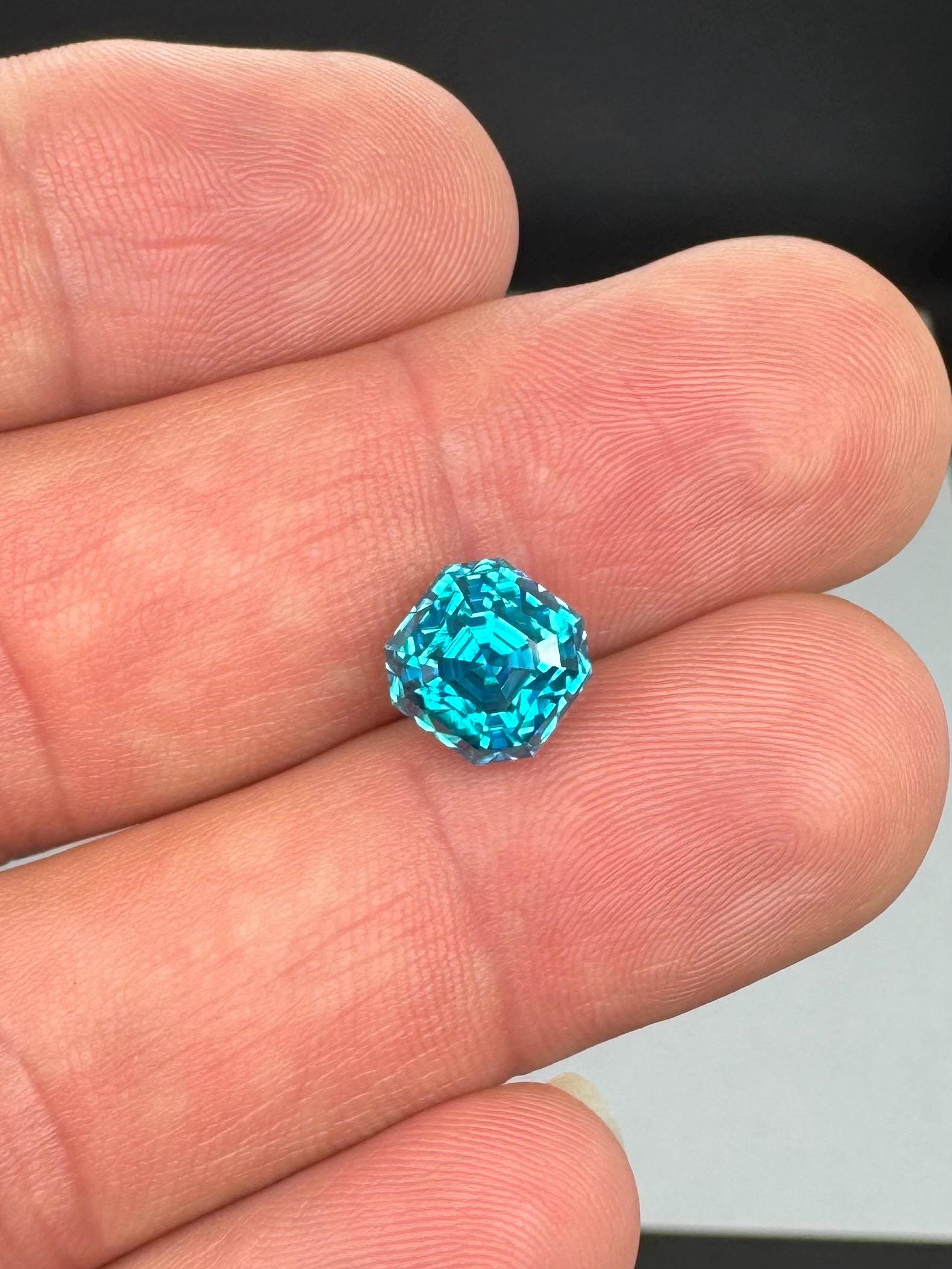 Arguably the best zircon I've had the opportunity to cut or seen for that matter. A precision asscher cut on this natural Zircon. Heat treated as all blues are. Blue Zircon is a single source stone that only comes from Cambodia.