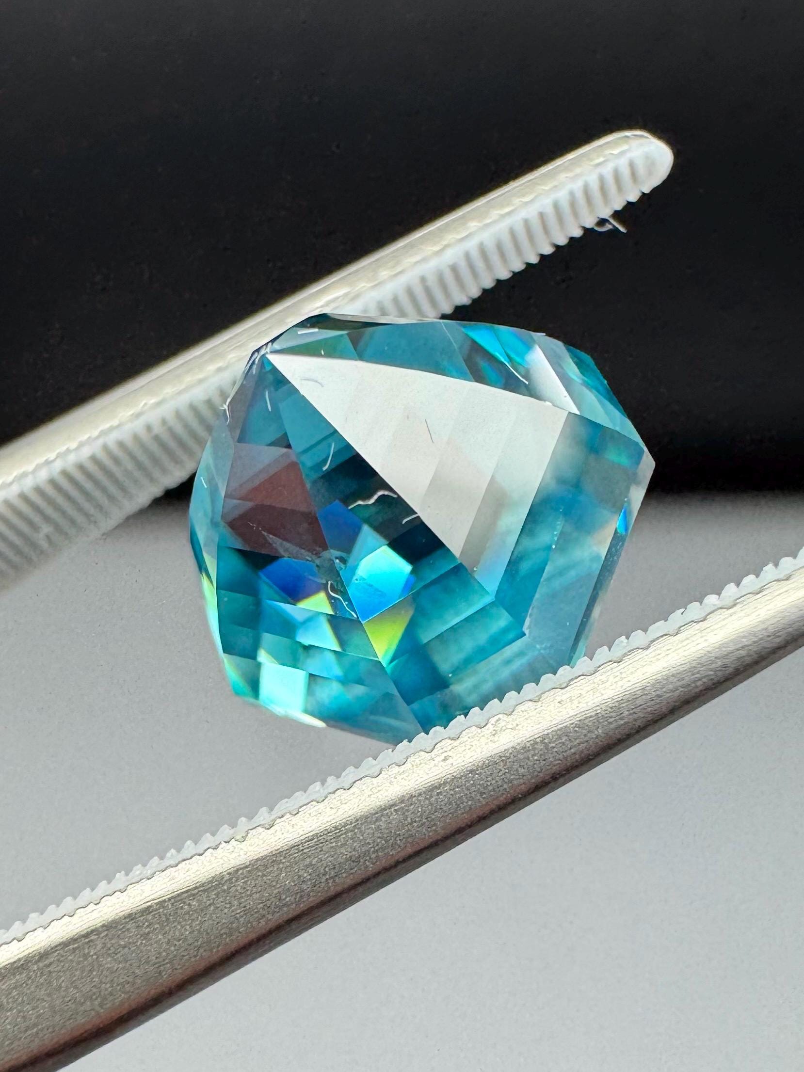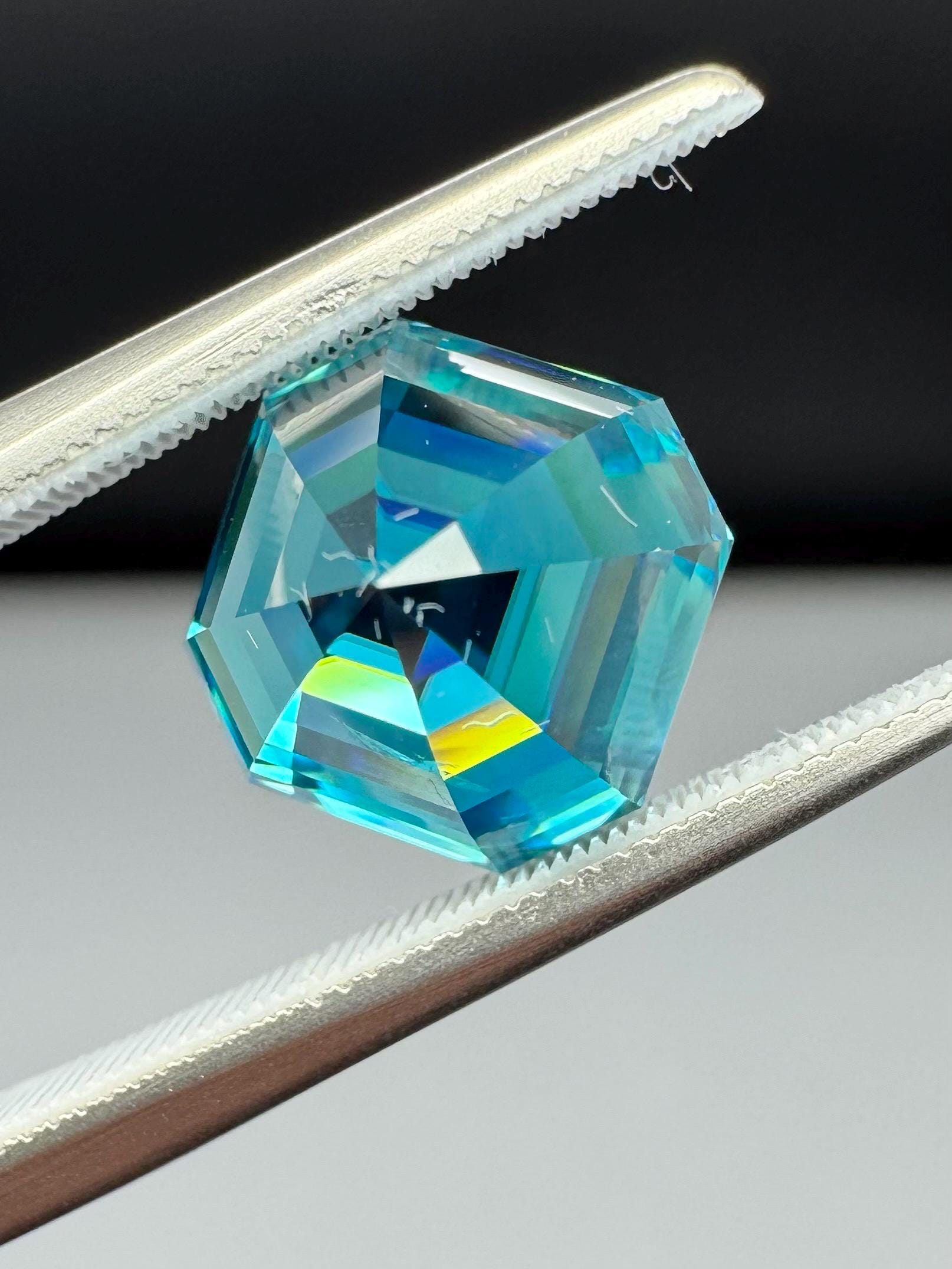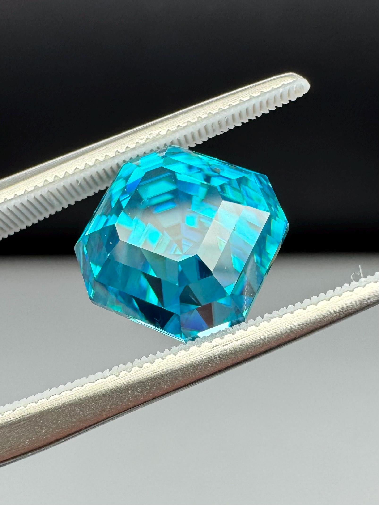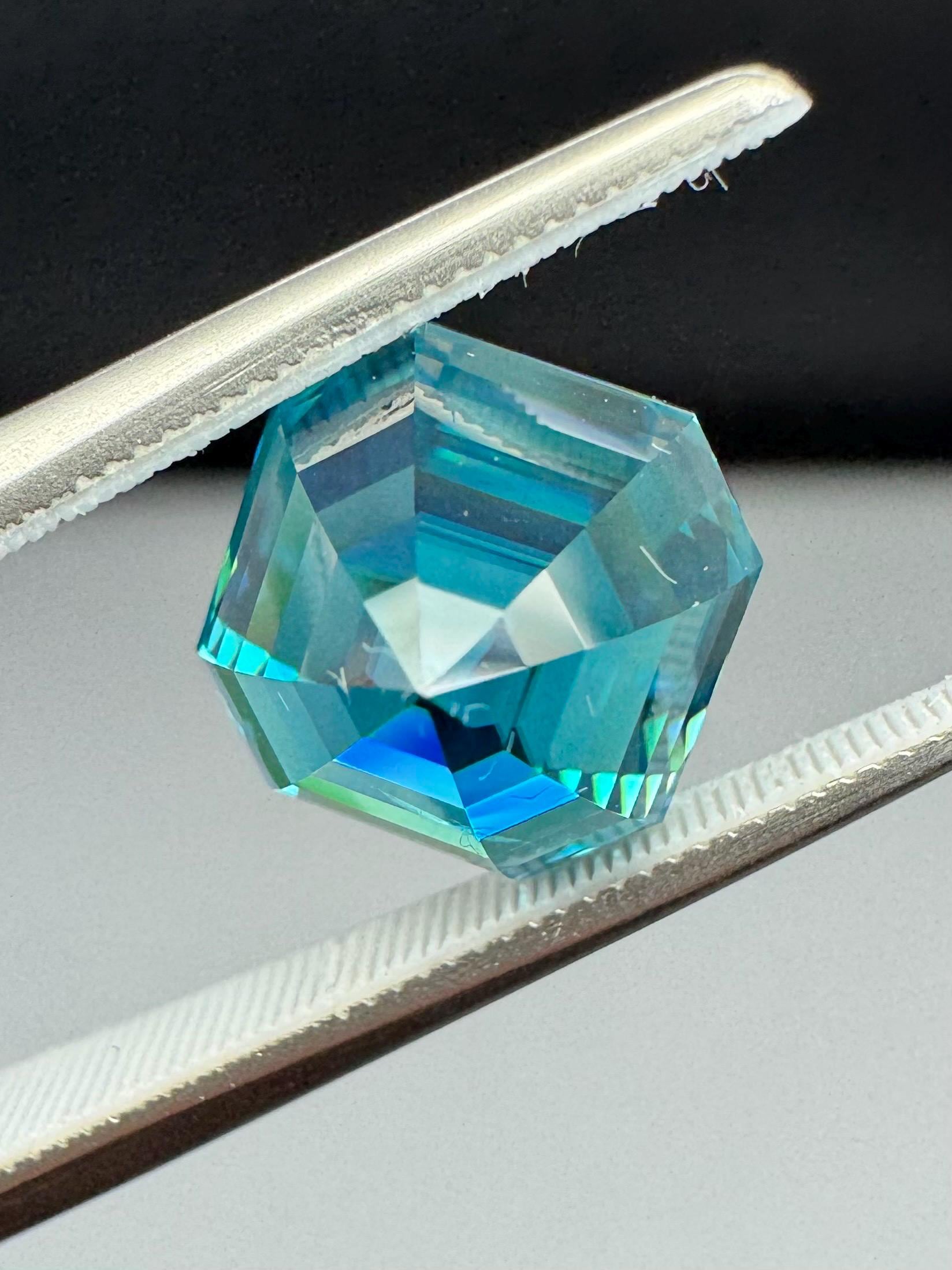 Arguably the best zircon I've had the opportunity to cut or seen for that matter. A precision asscher cut on this natural Zircon. Heat treated as all blues are. Blue Zircon is a single source stone that only comes from Cambodia.