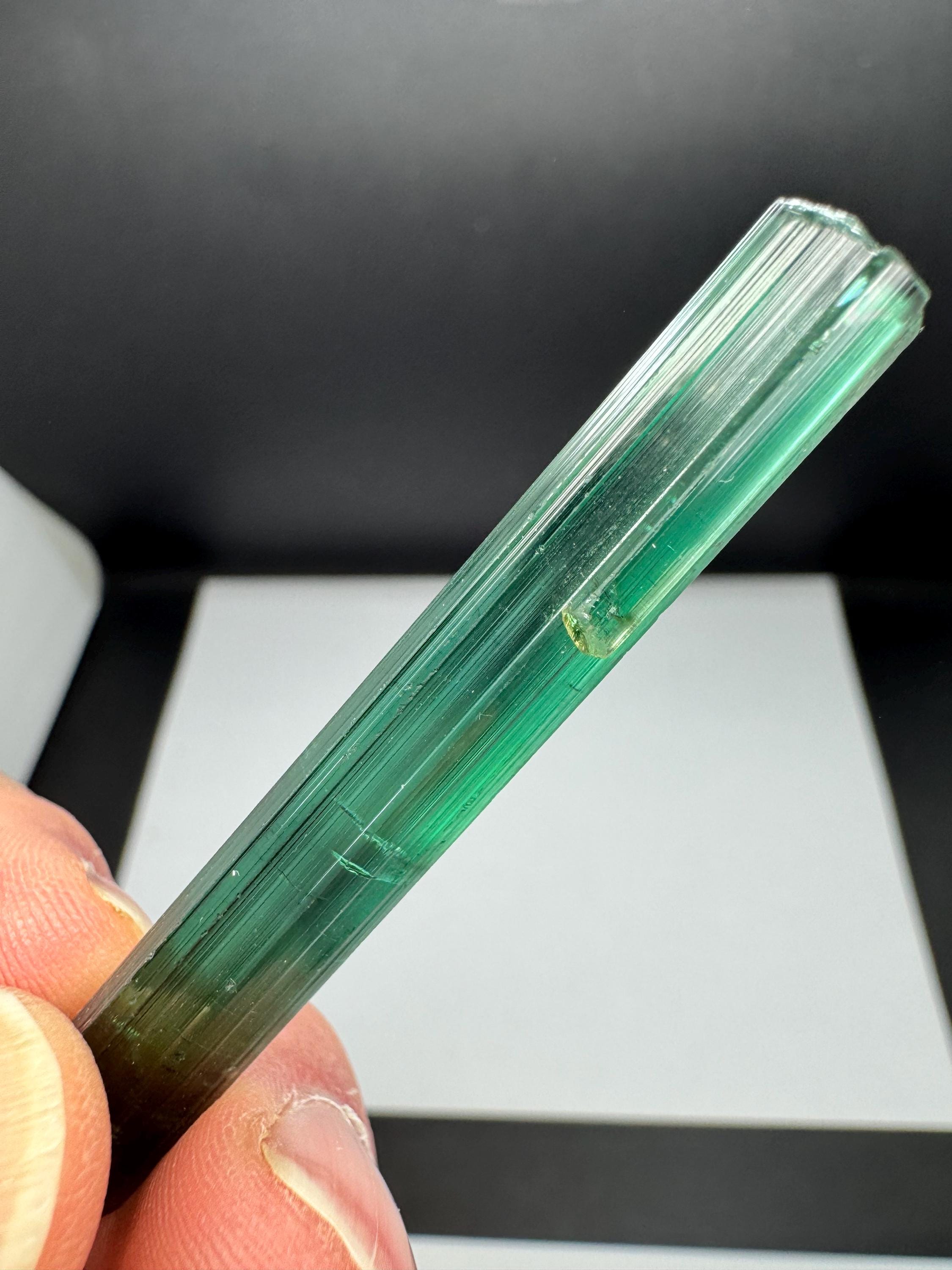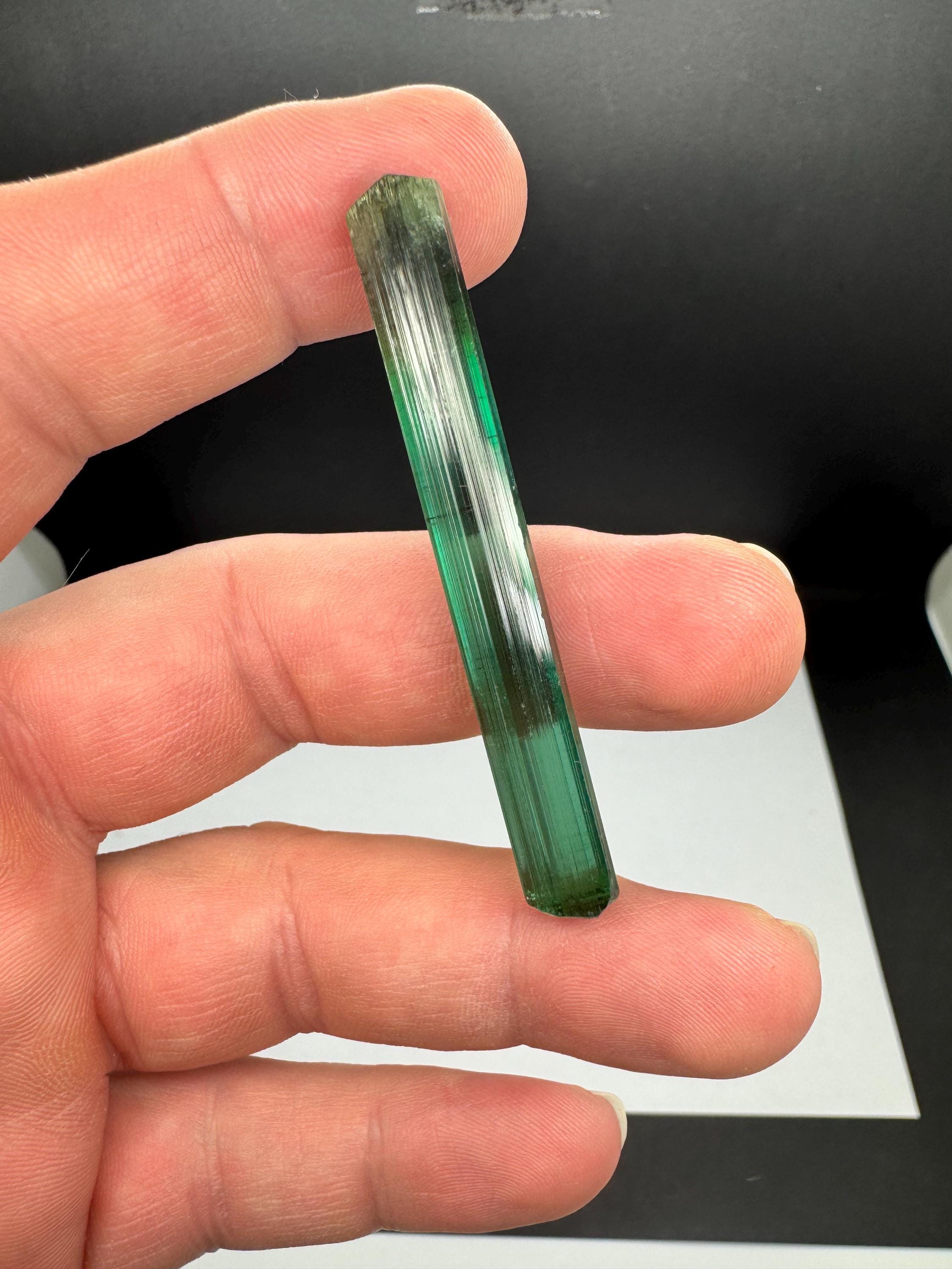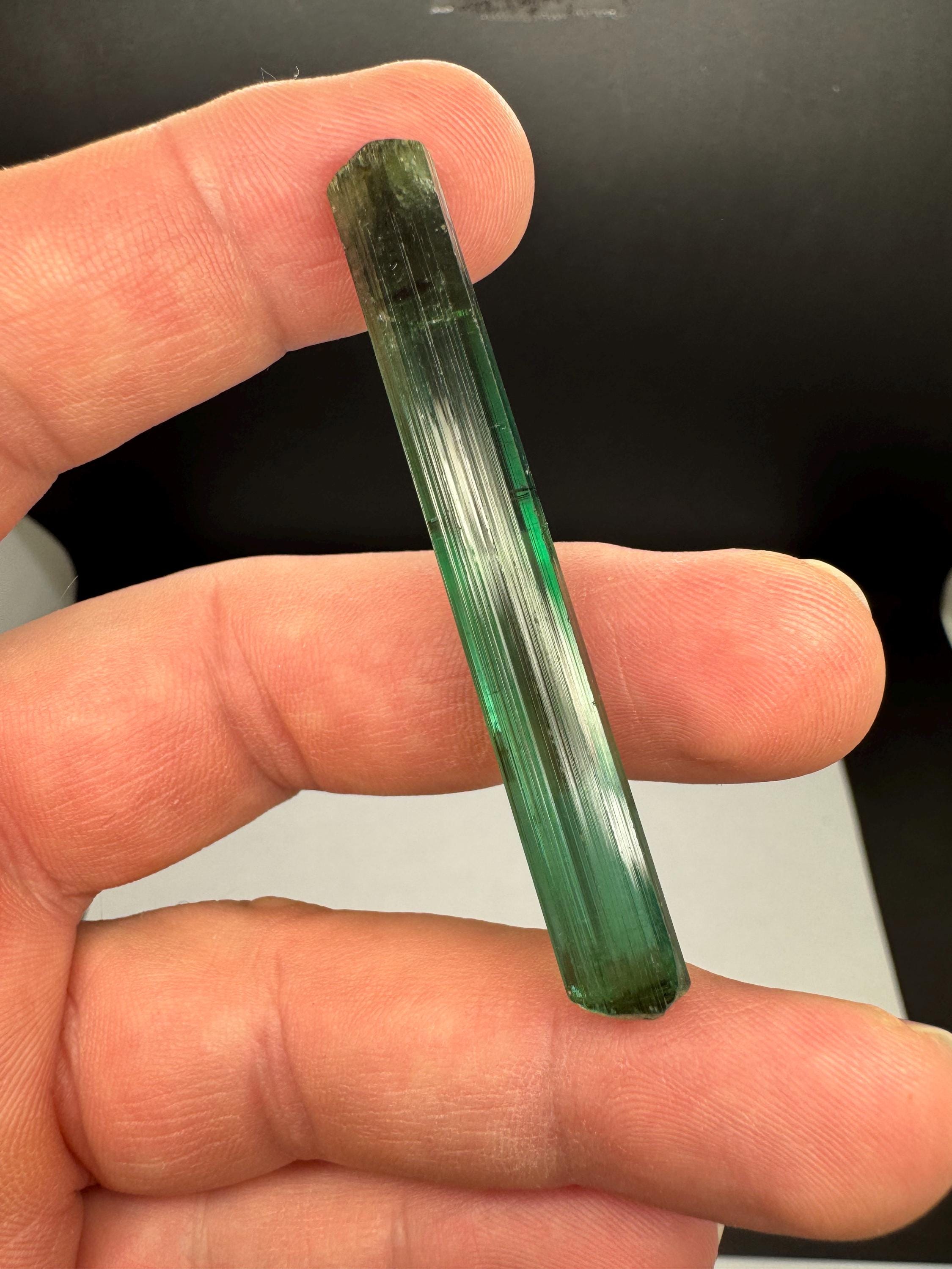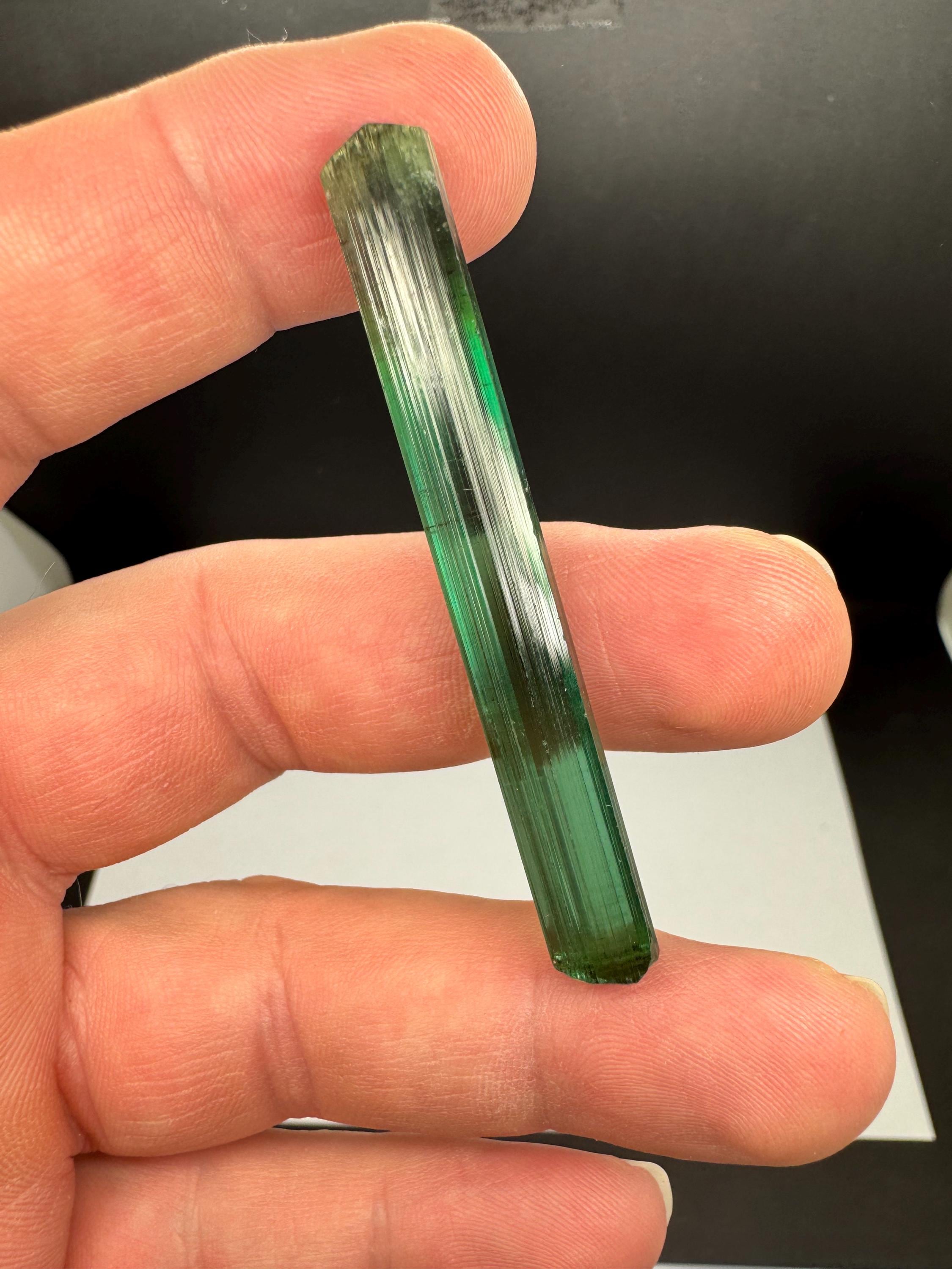 A fine facet grade gem specimen from the famous pederneira Mine in Brazil. Certainly any collector would marvel at such a true gem. This crystal weighs 9.3g and measures 62mm long and 8mm wide. A rare piece.