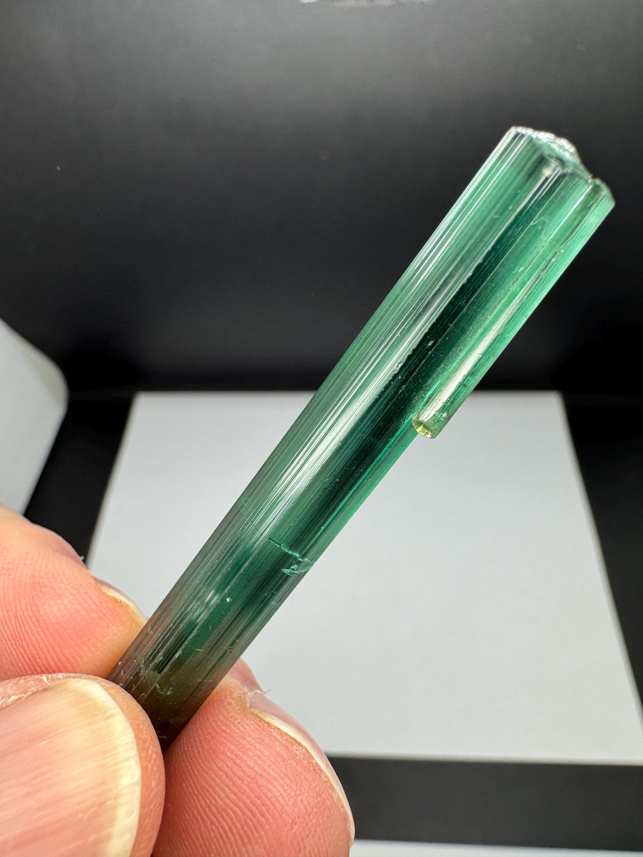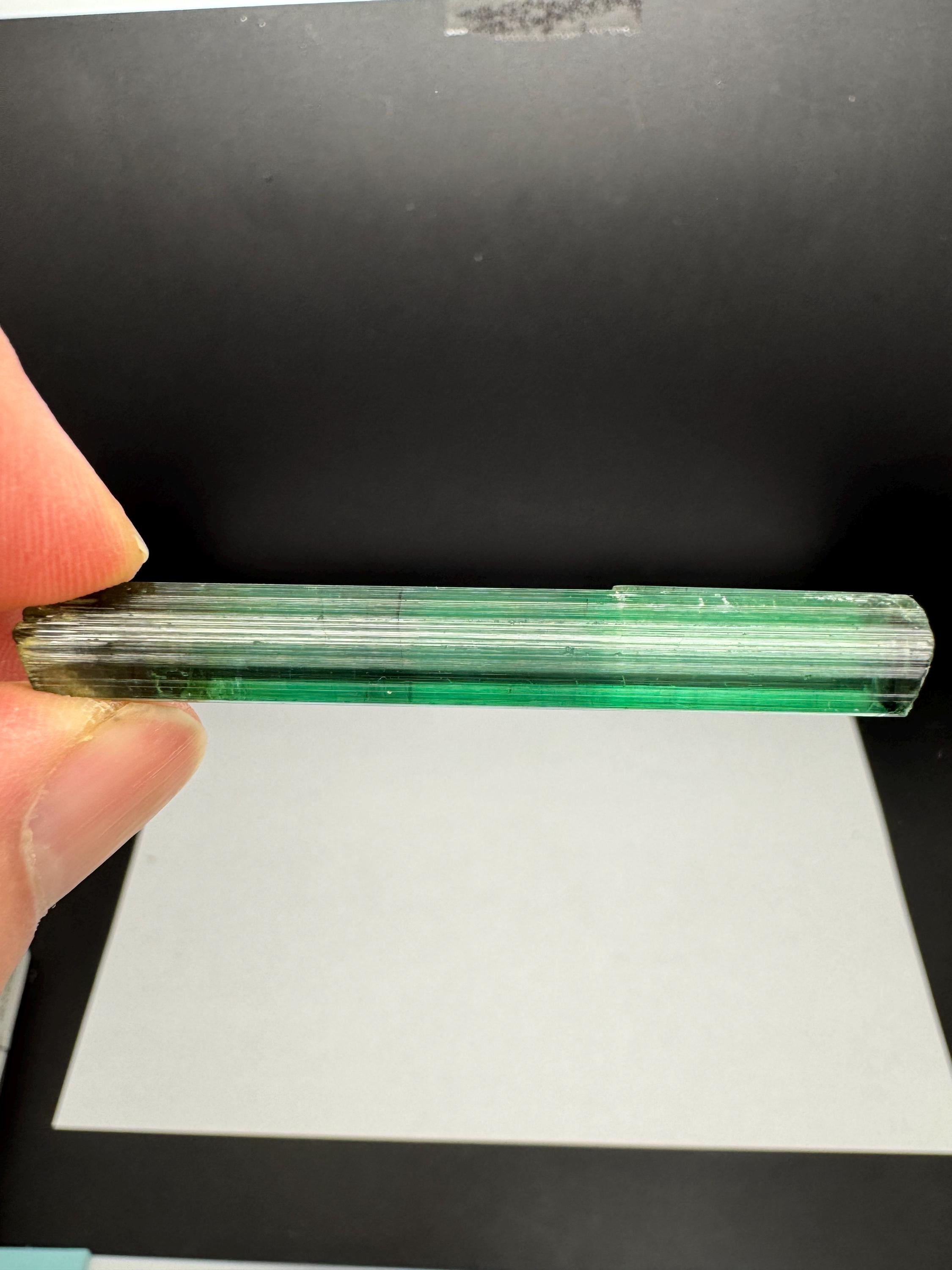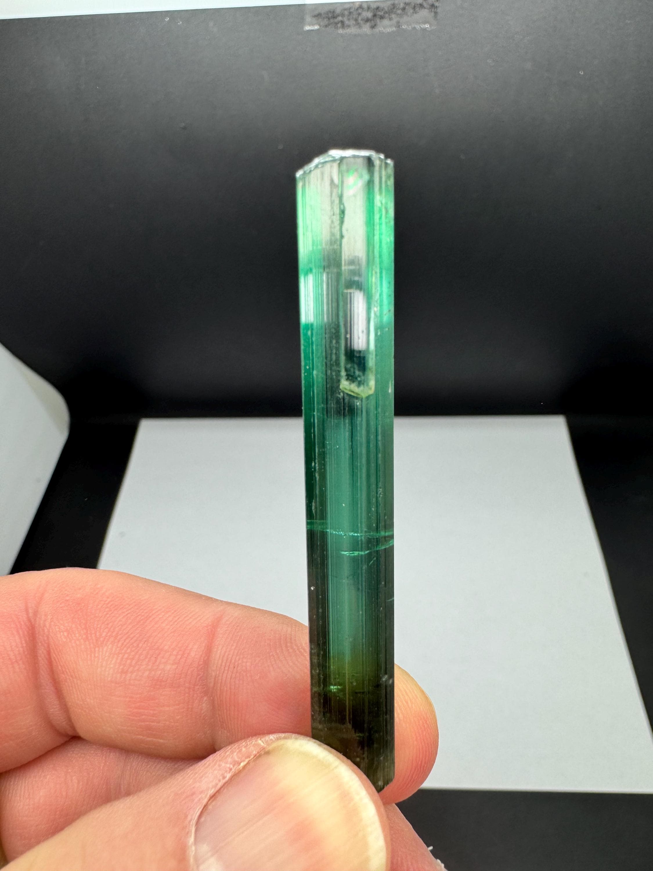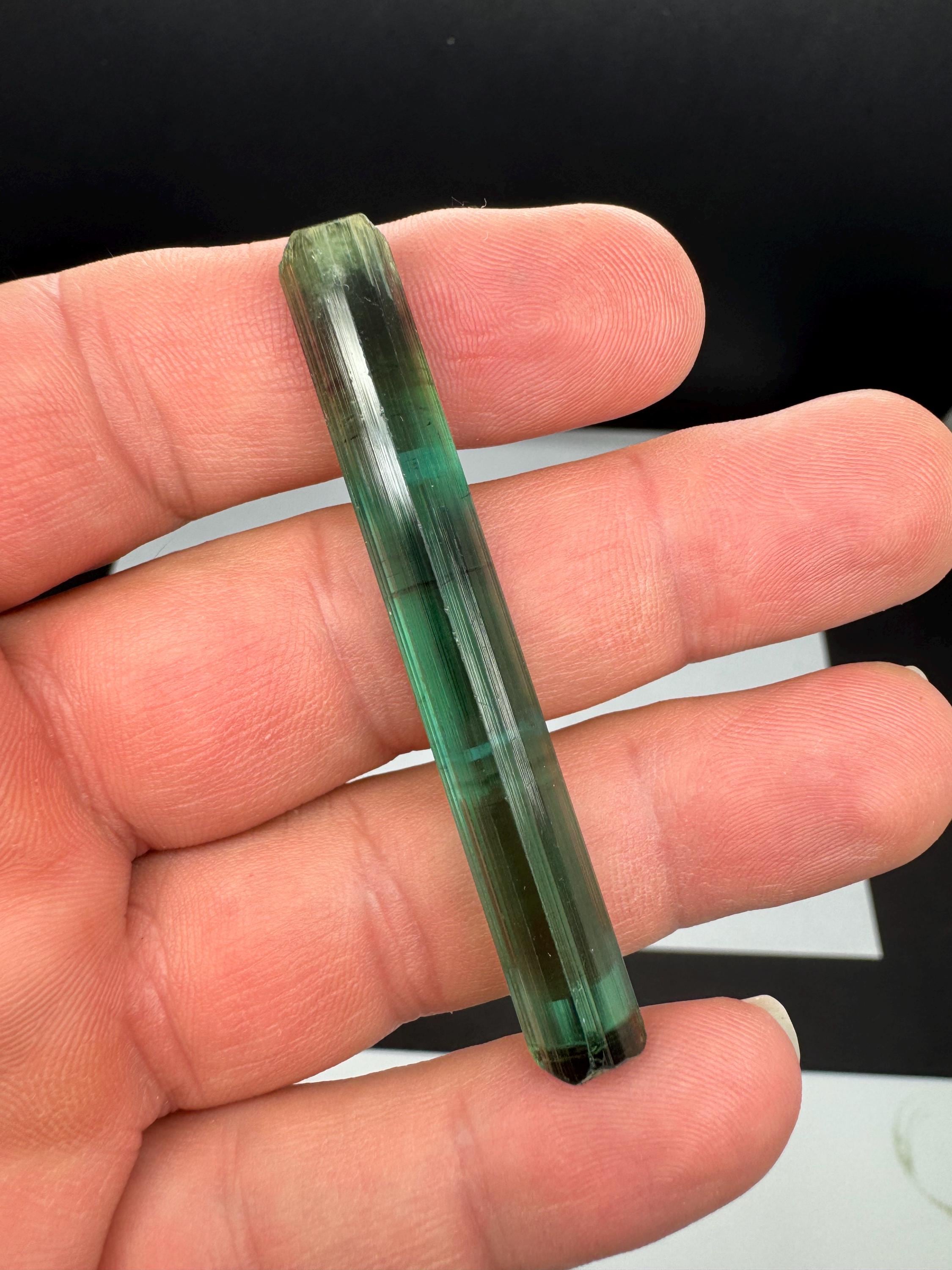A fine facet grade gem specimen from the famous pederneira Mine in Brazil. Certainly any collector would marvel at such a true gem. This crystal weighs 9.3g and measures 62mm long and 8mm wide. A rare piece.