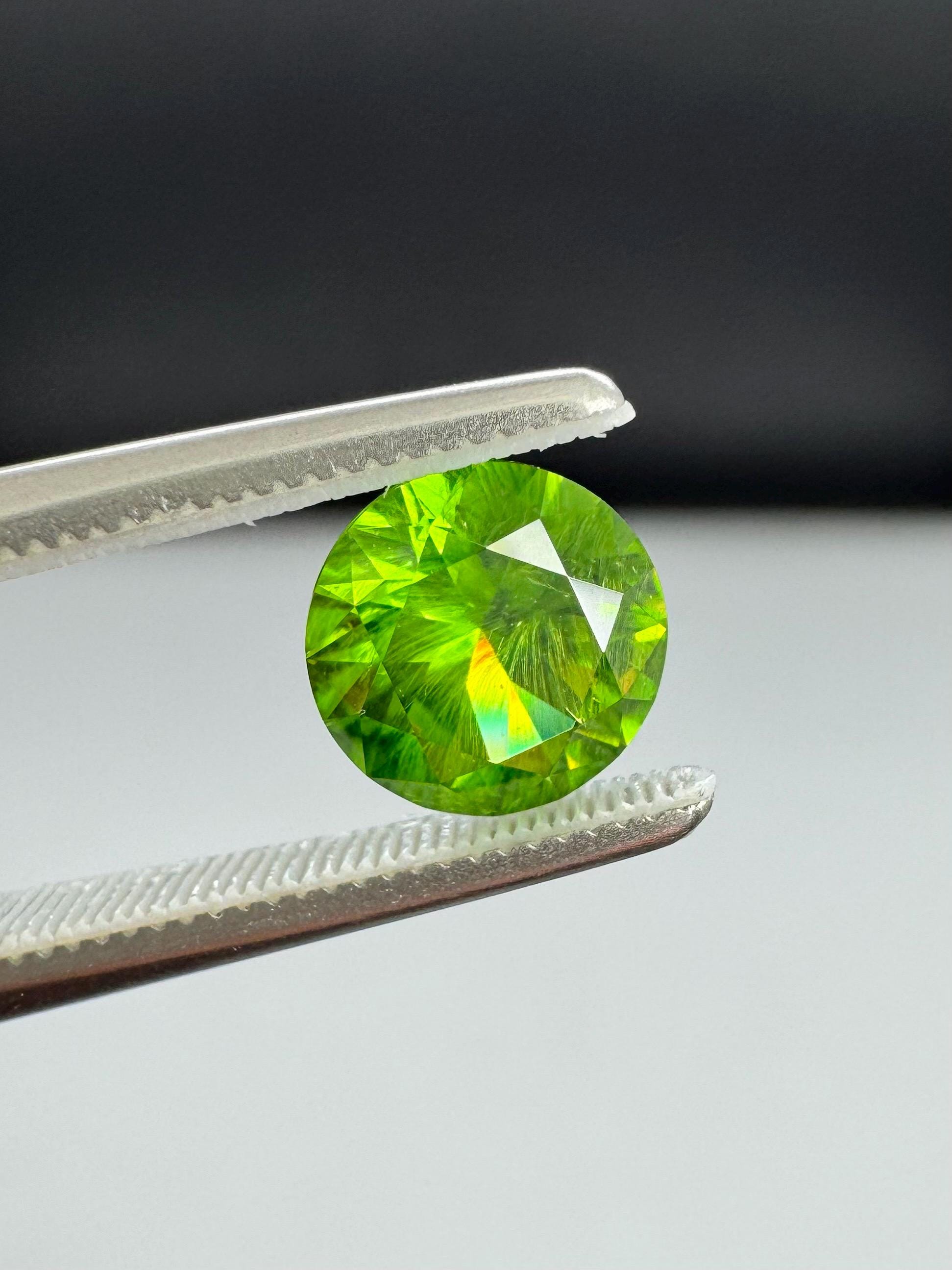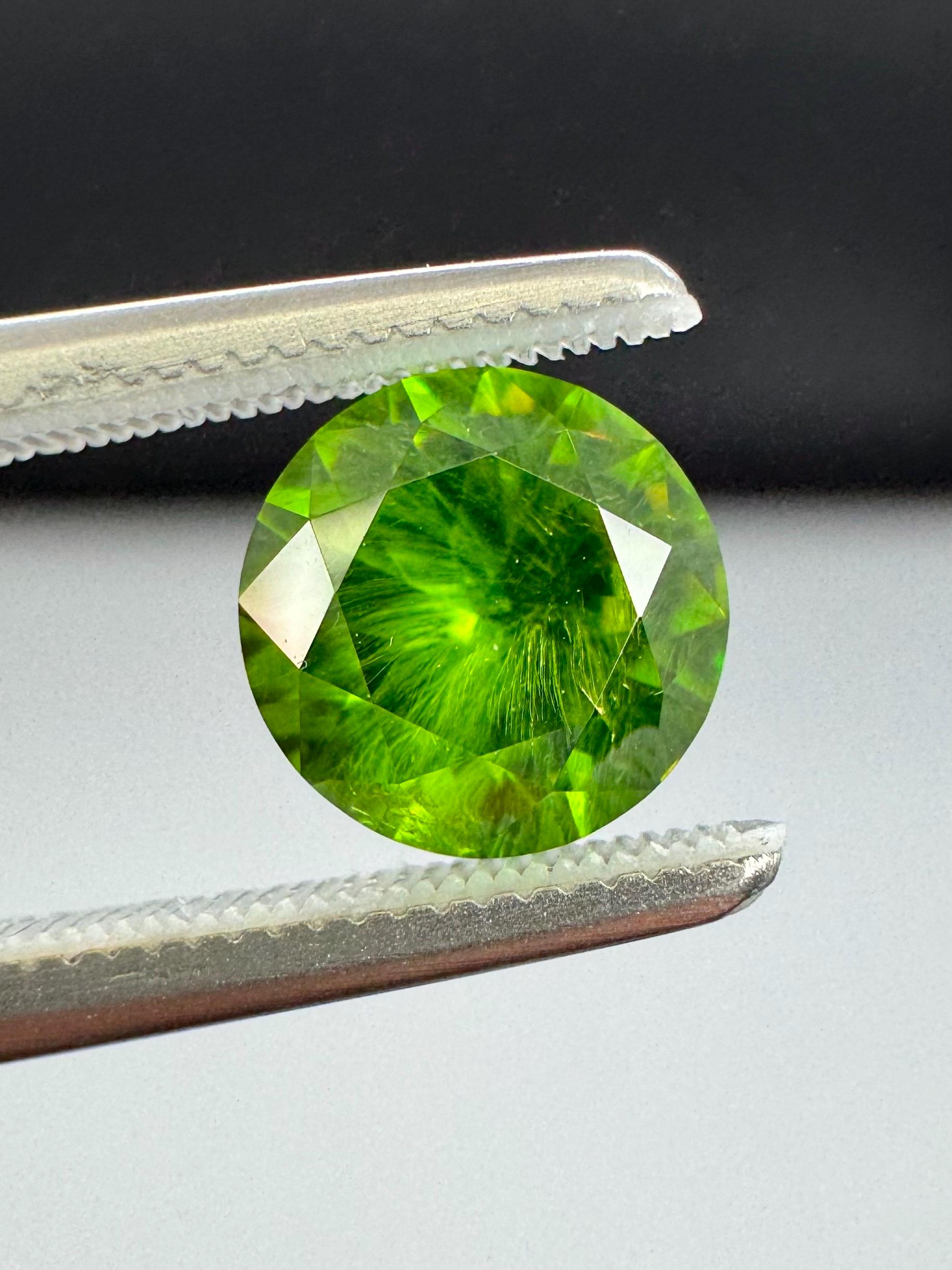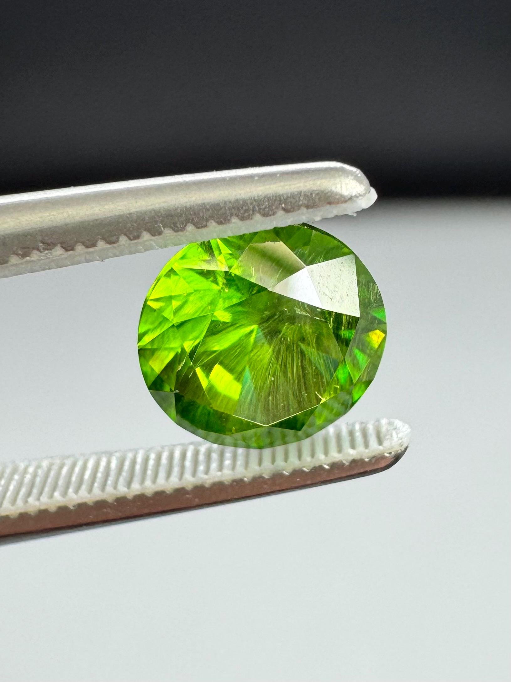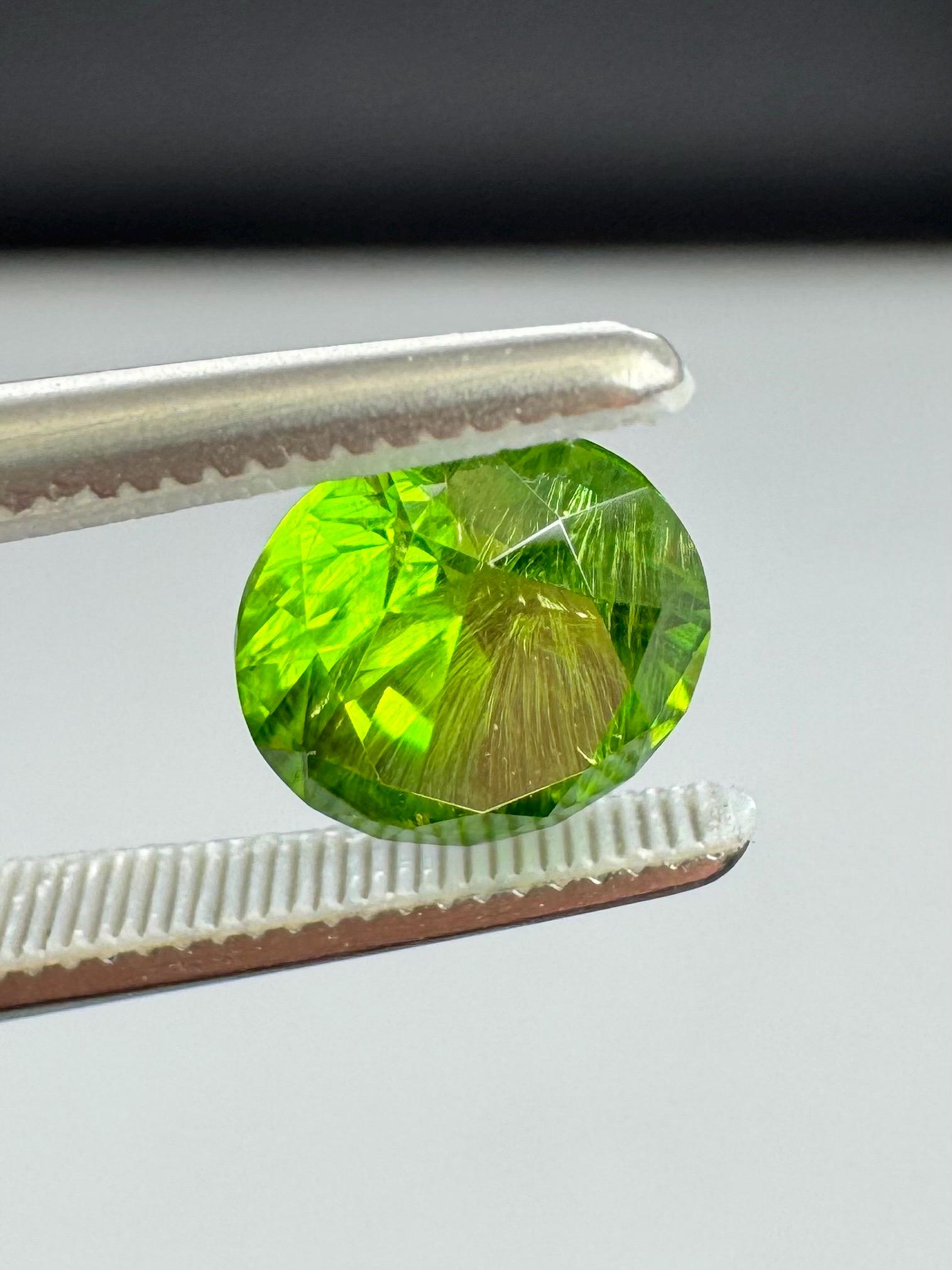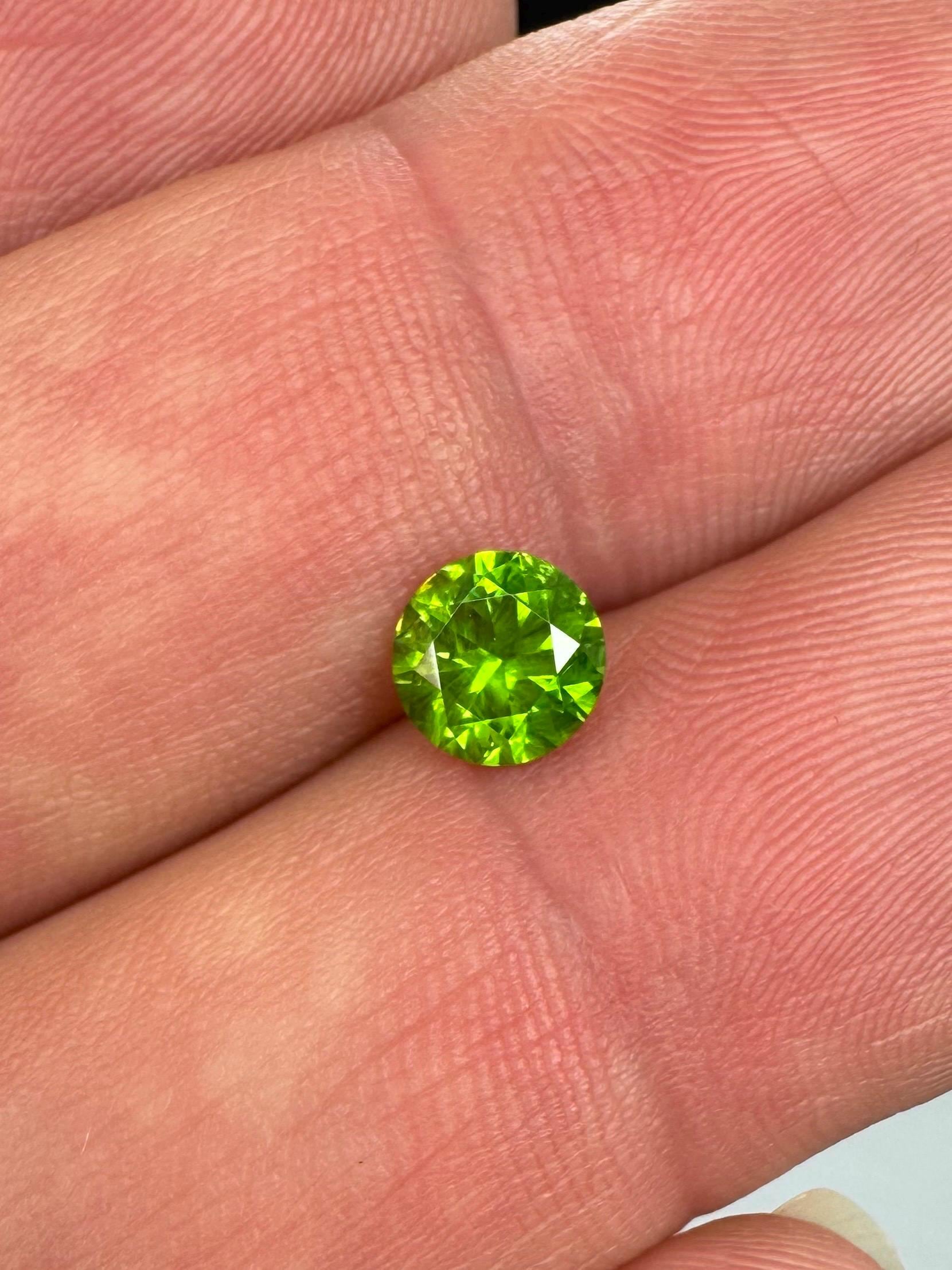 Perfect example of a demantoid with the horsetail inclusions. 6mm 1ct. Untreated obviously. Just an amazing color with a modern cut. A true gem.