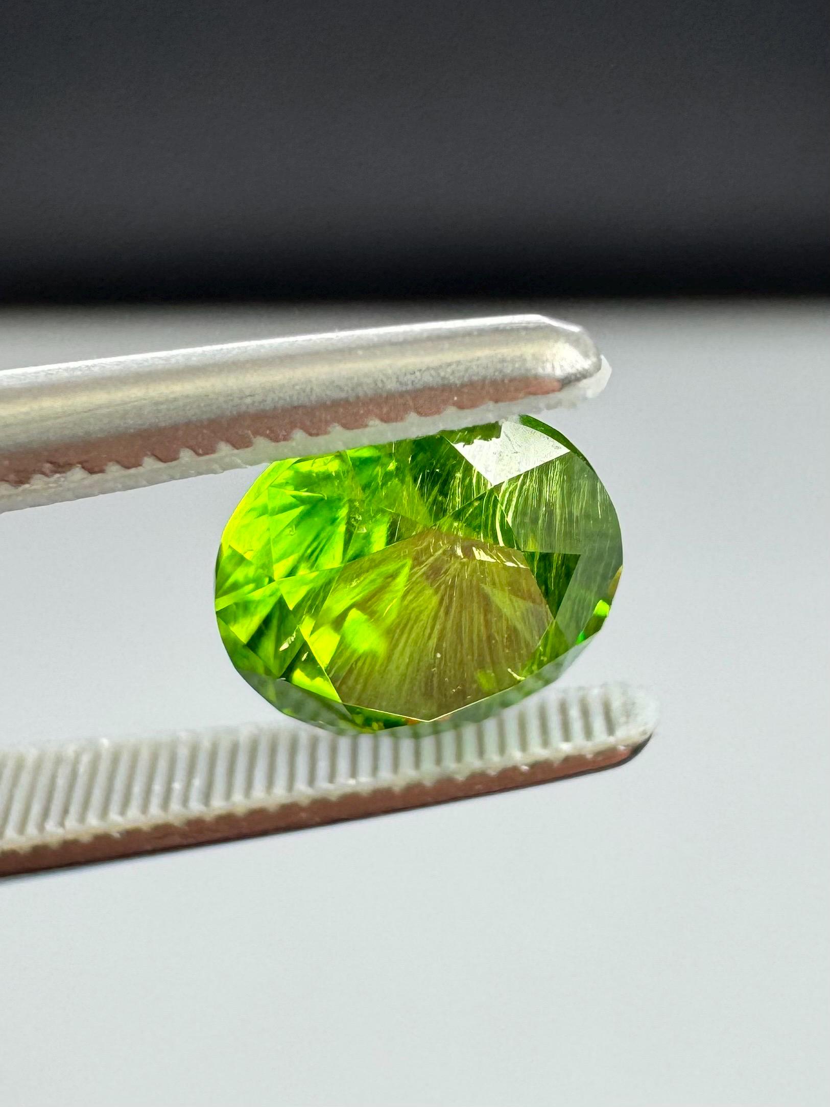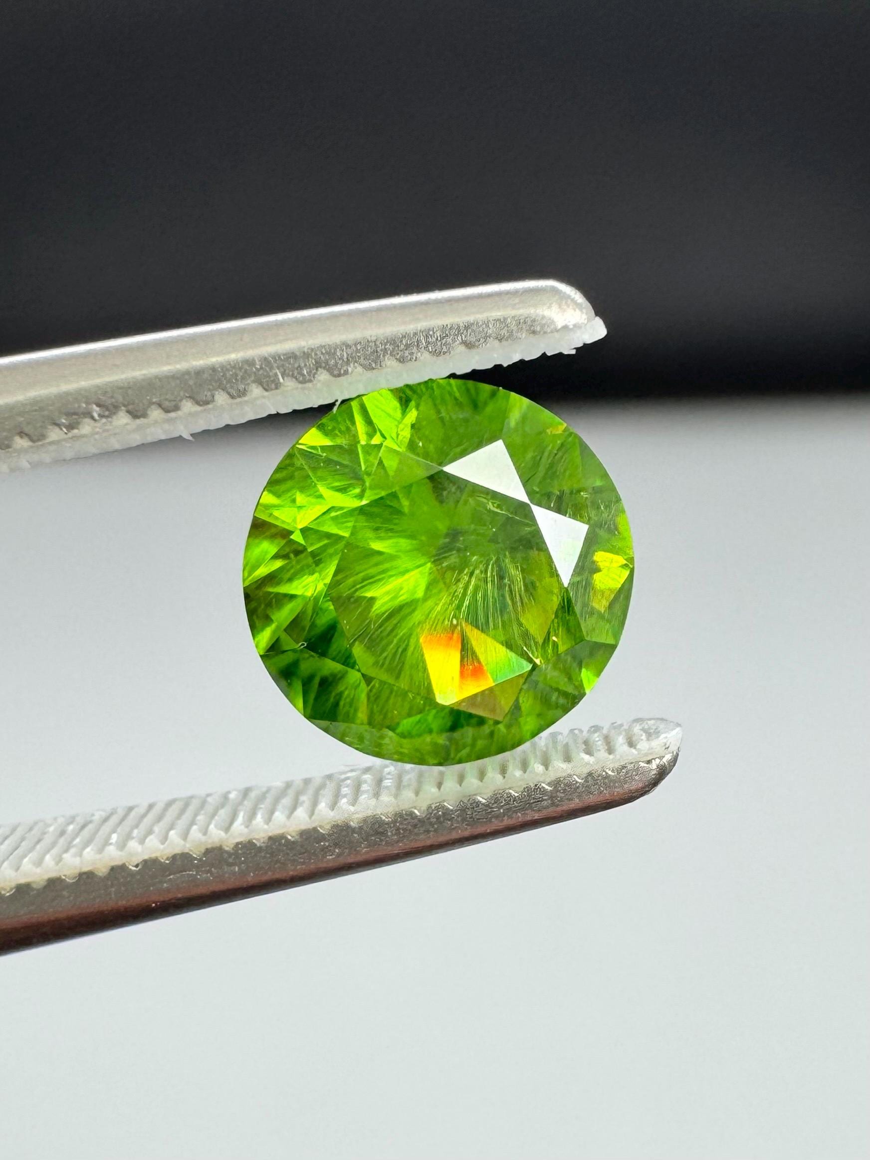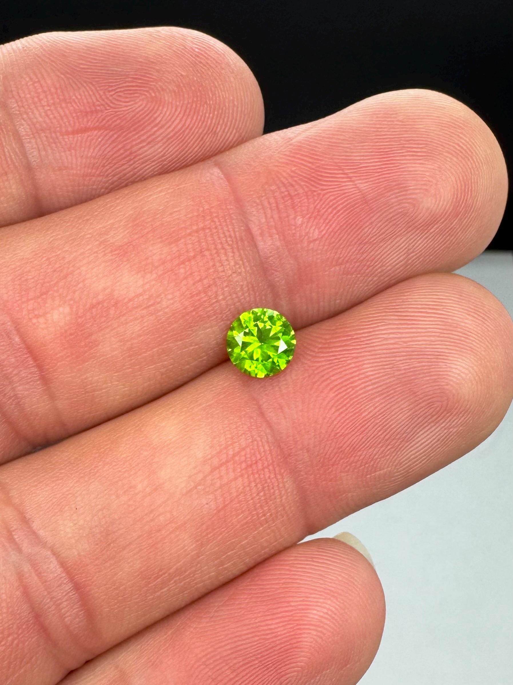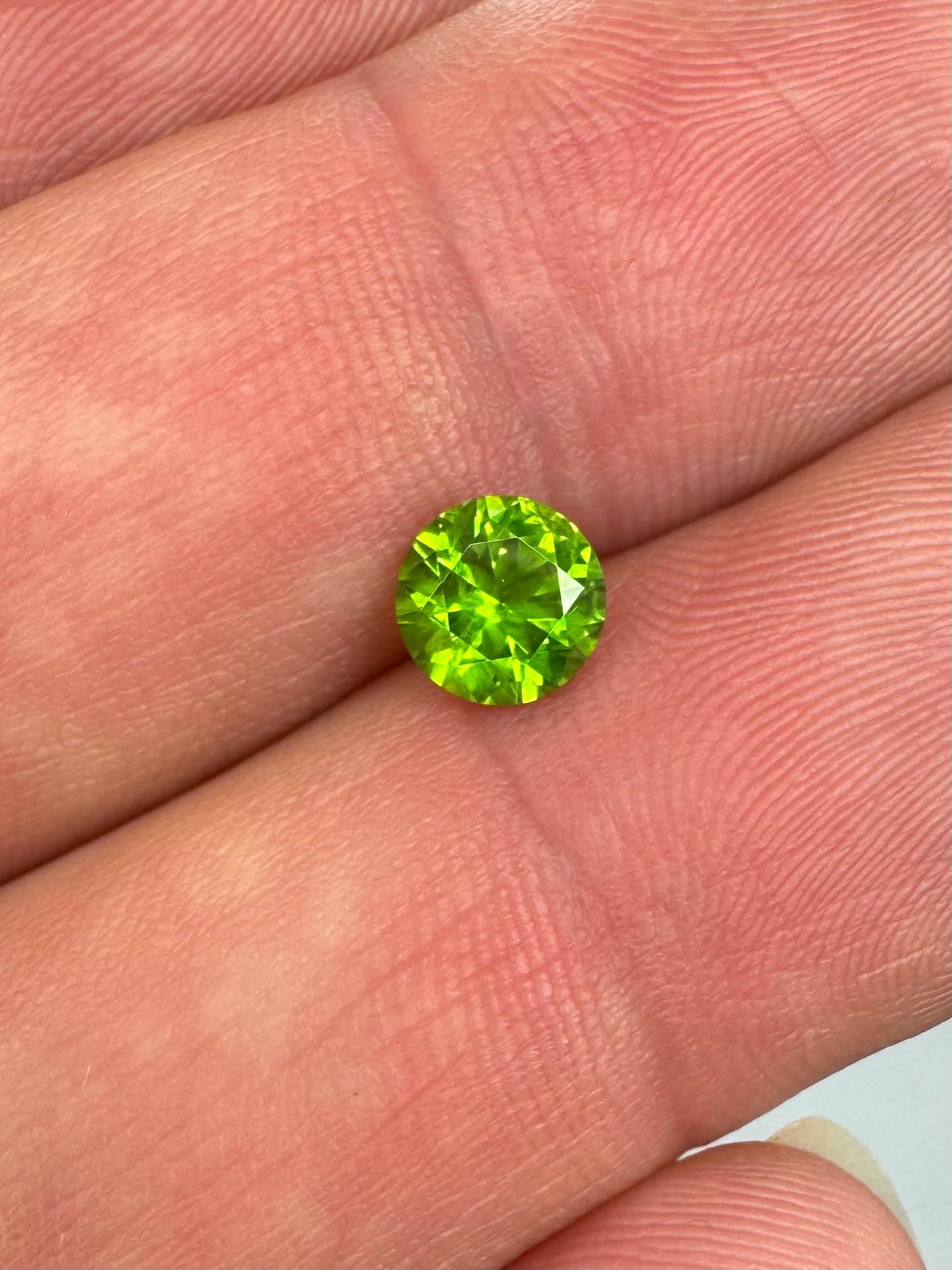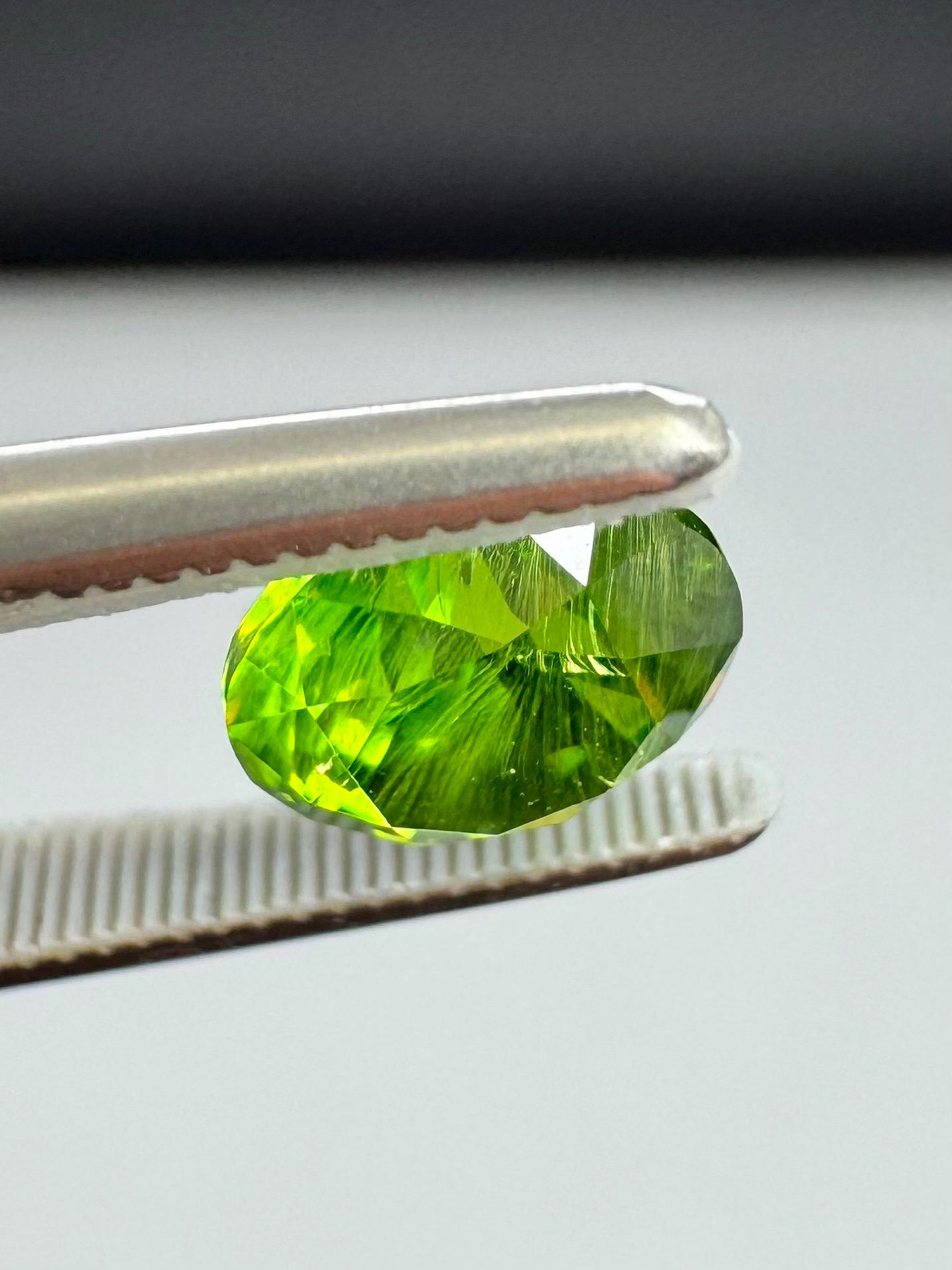 Perfect example of a demantoid with the horsetail inclusions. 6mm 1ct. Untreated obviously. Just an amazing color with a modern cut. A true gem.