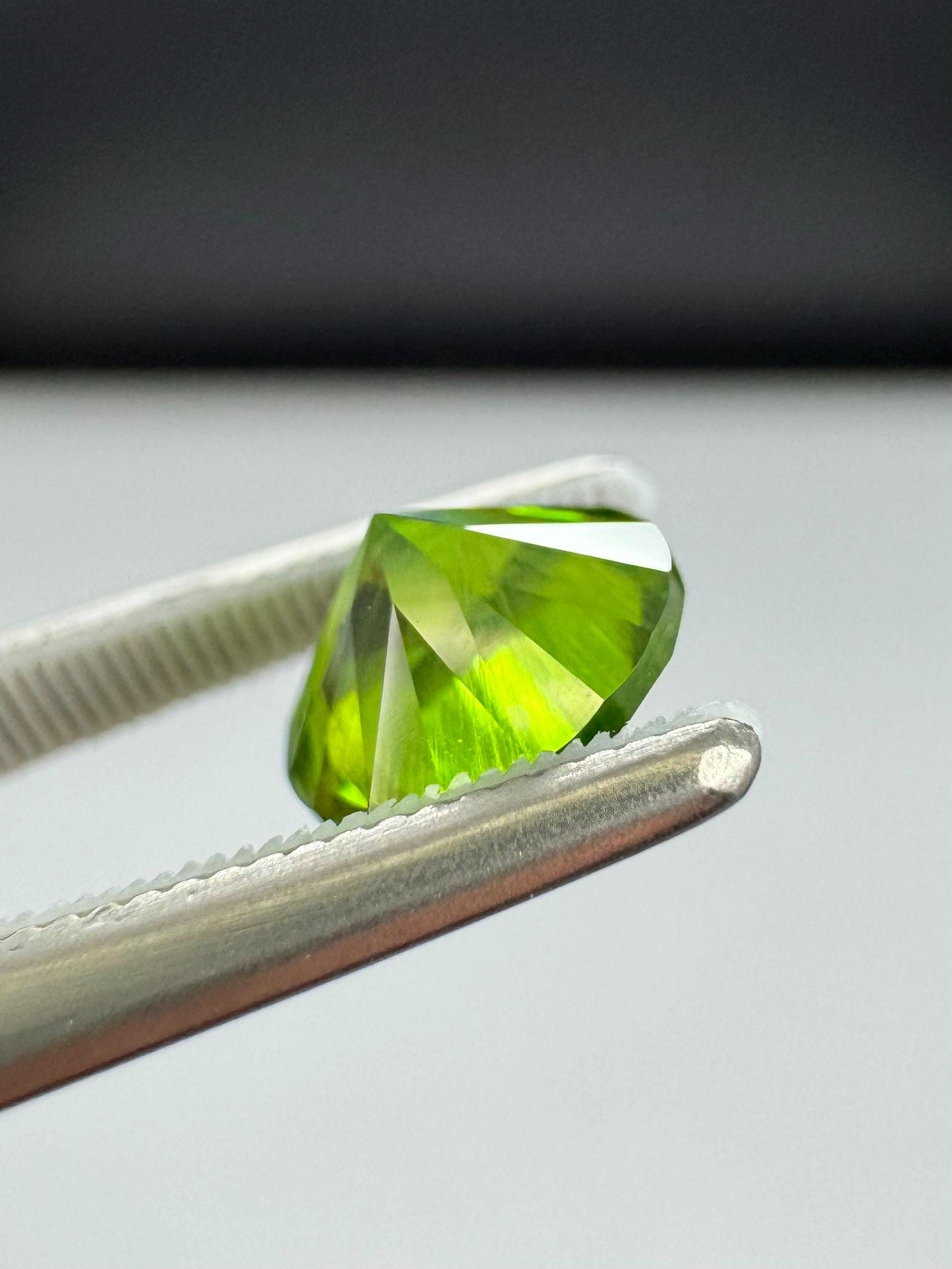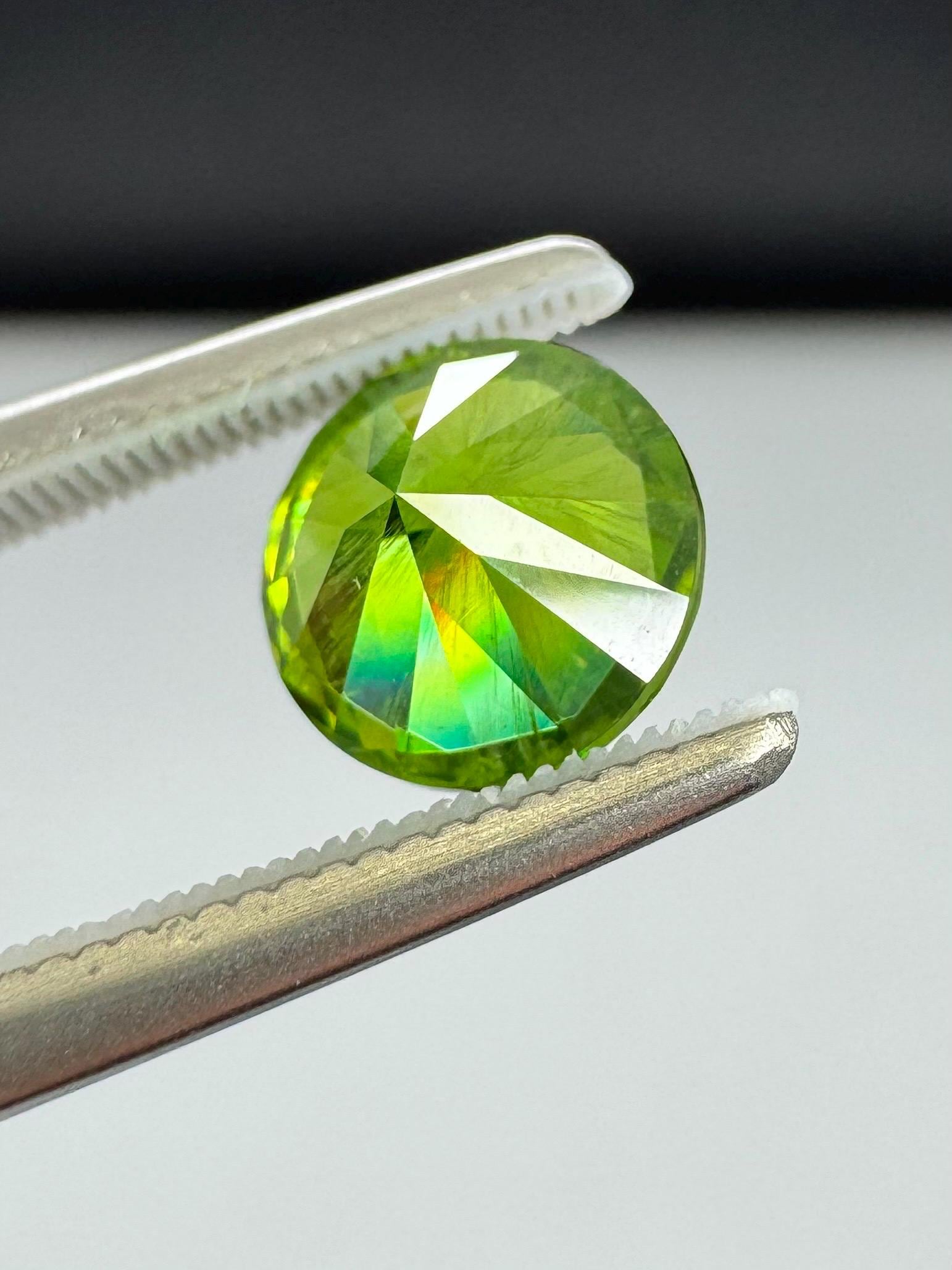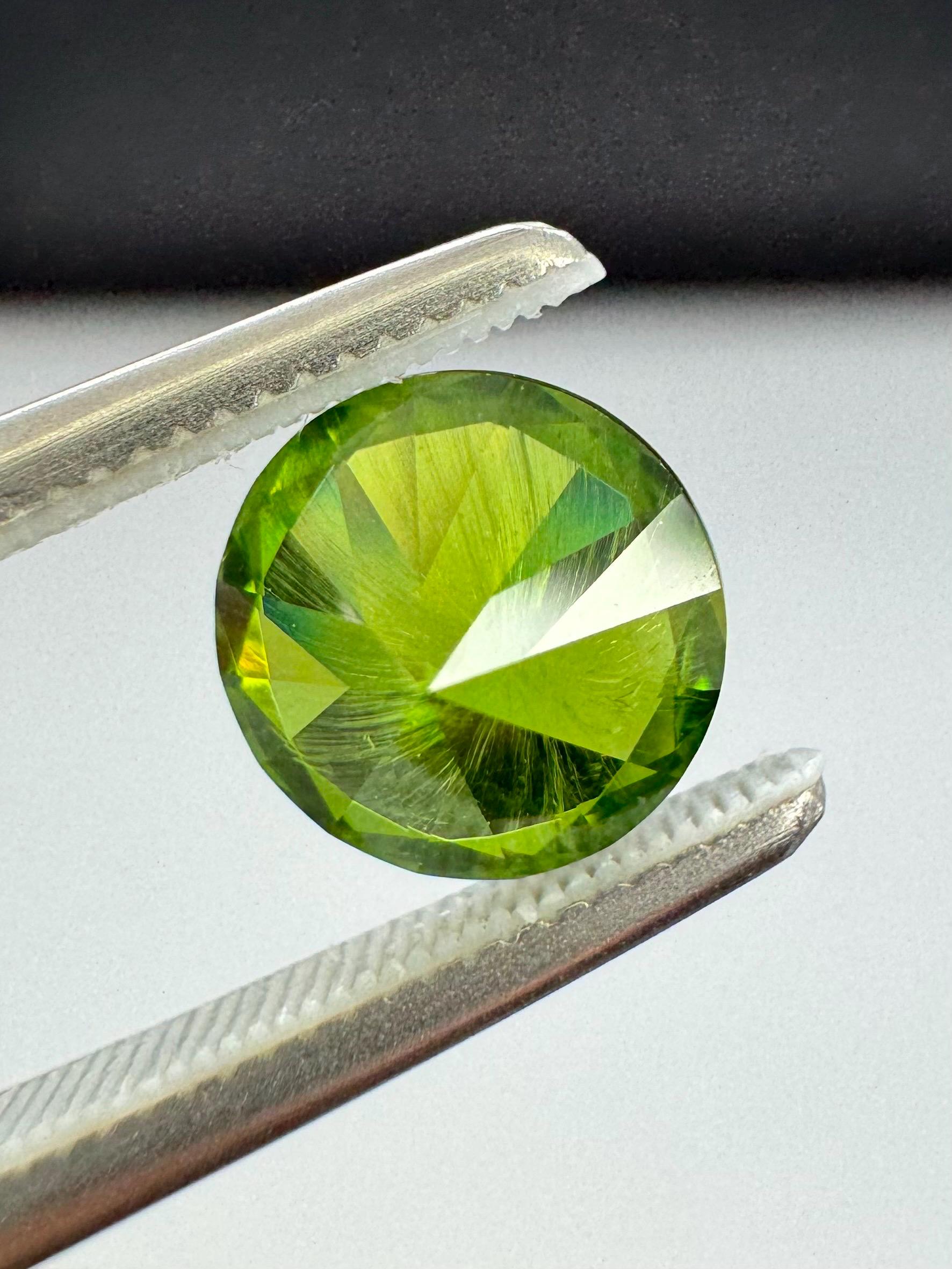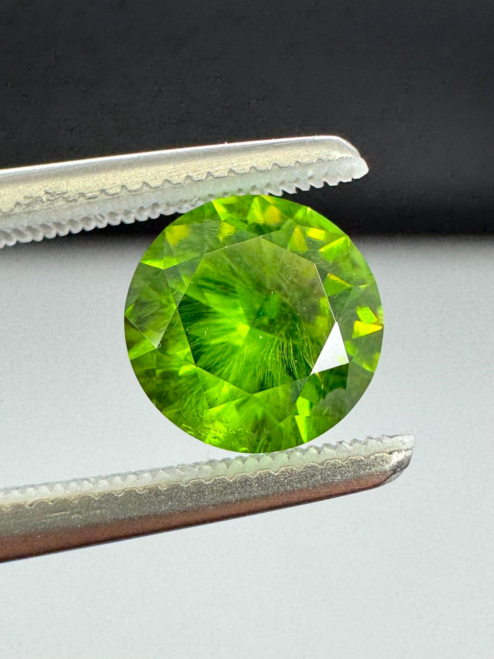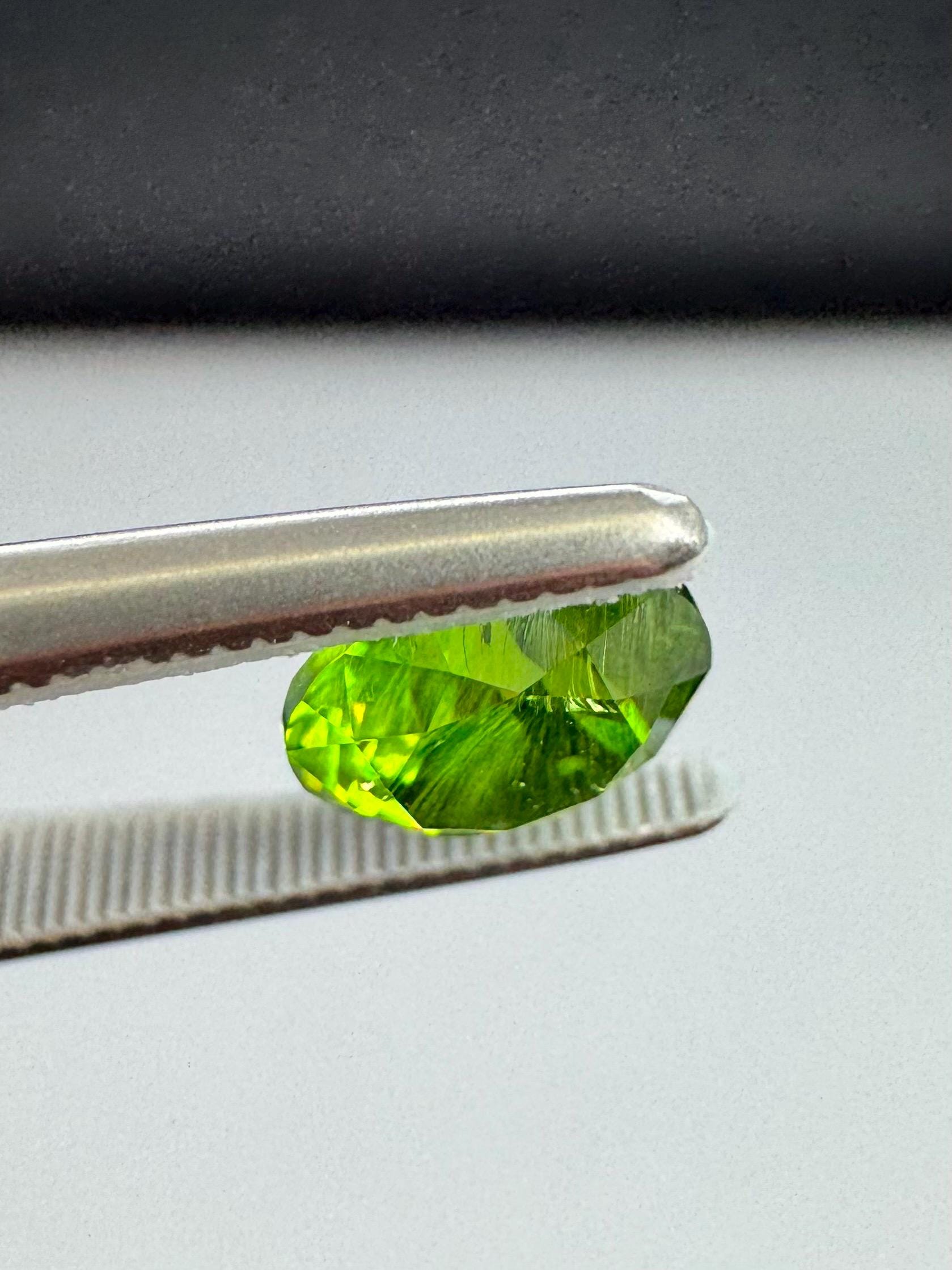 Perfect example of a demantoid with the horsetail inclusions. 6mm 1ct. Untreated obviously. Just an amazing color with a modern cut. A true gem.