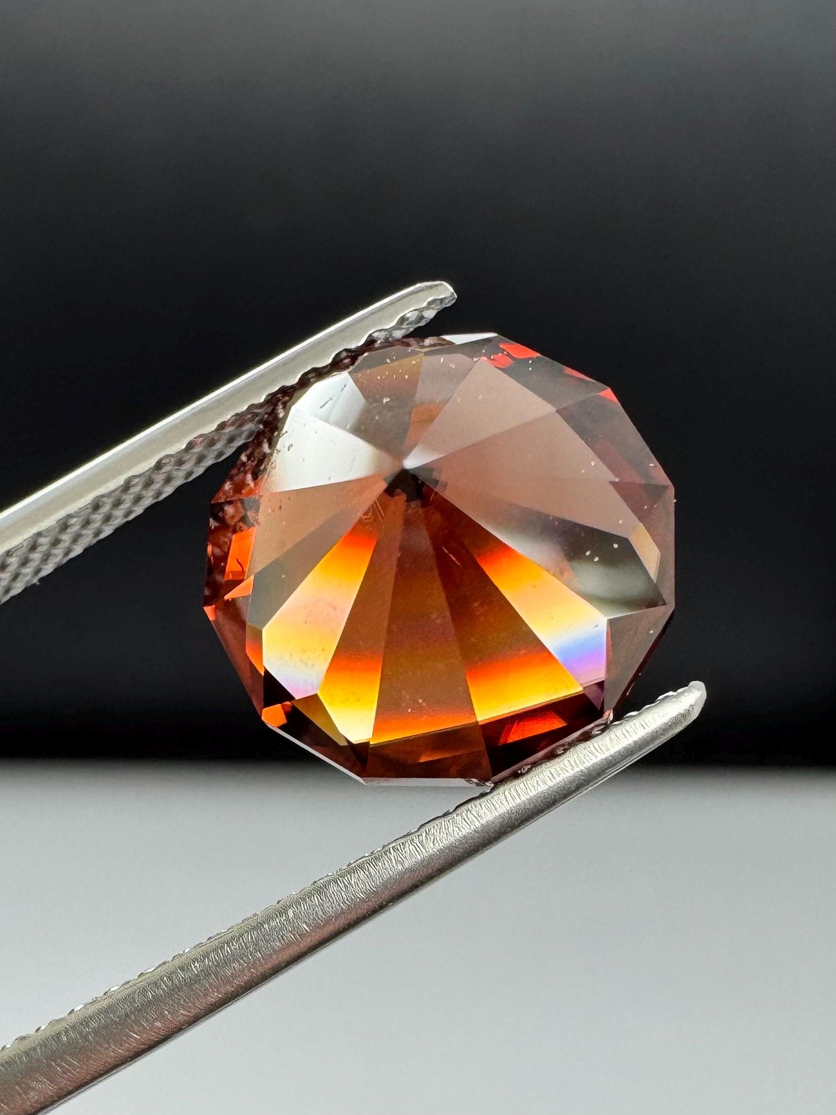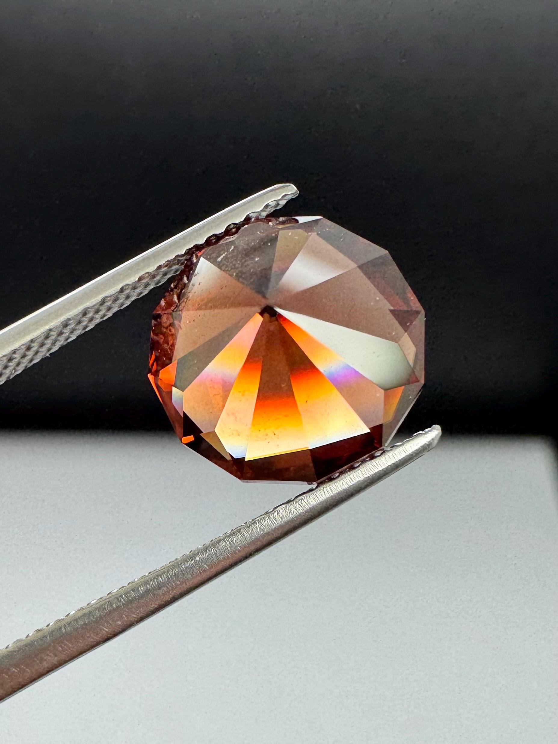 A unique cut round design. 10mm 6.2ct this is an unheated zircon.