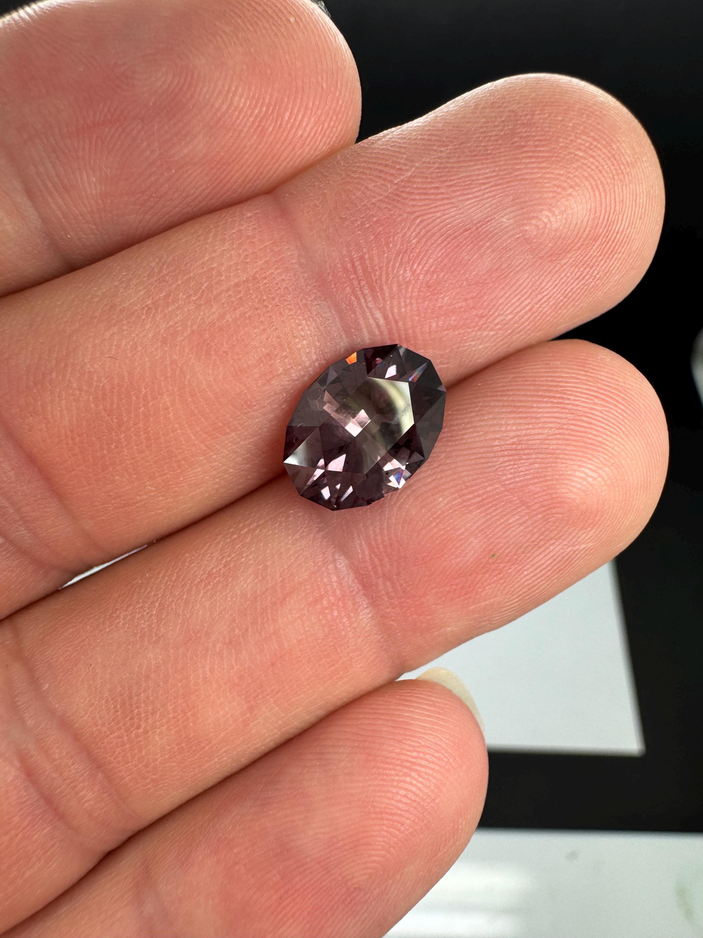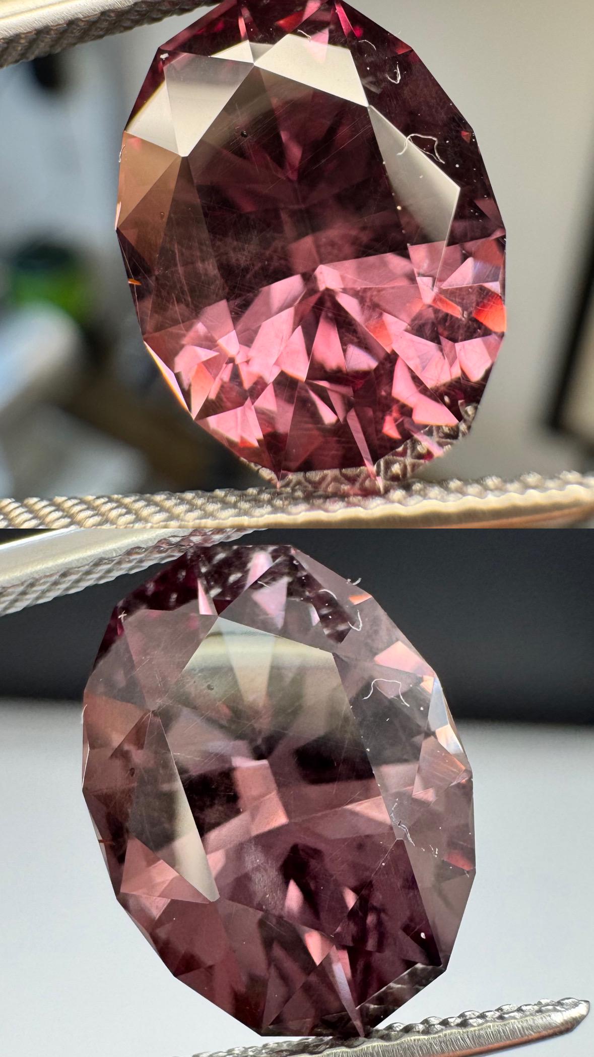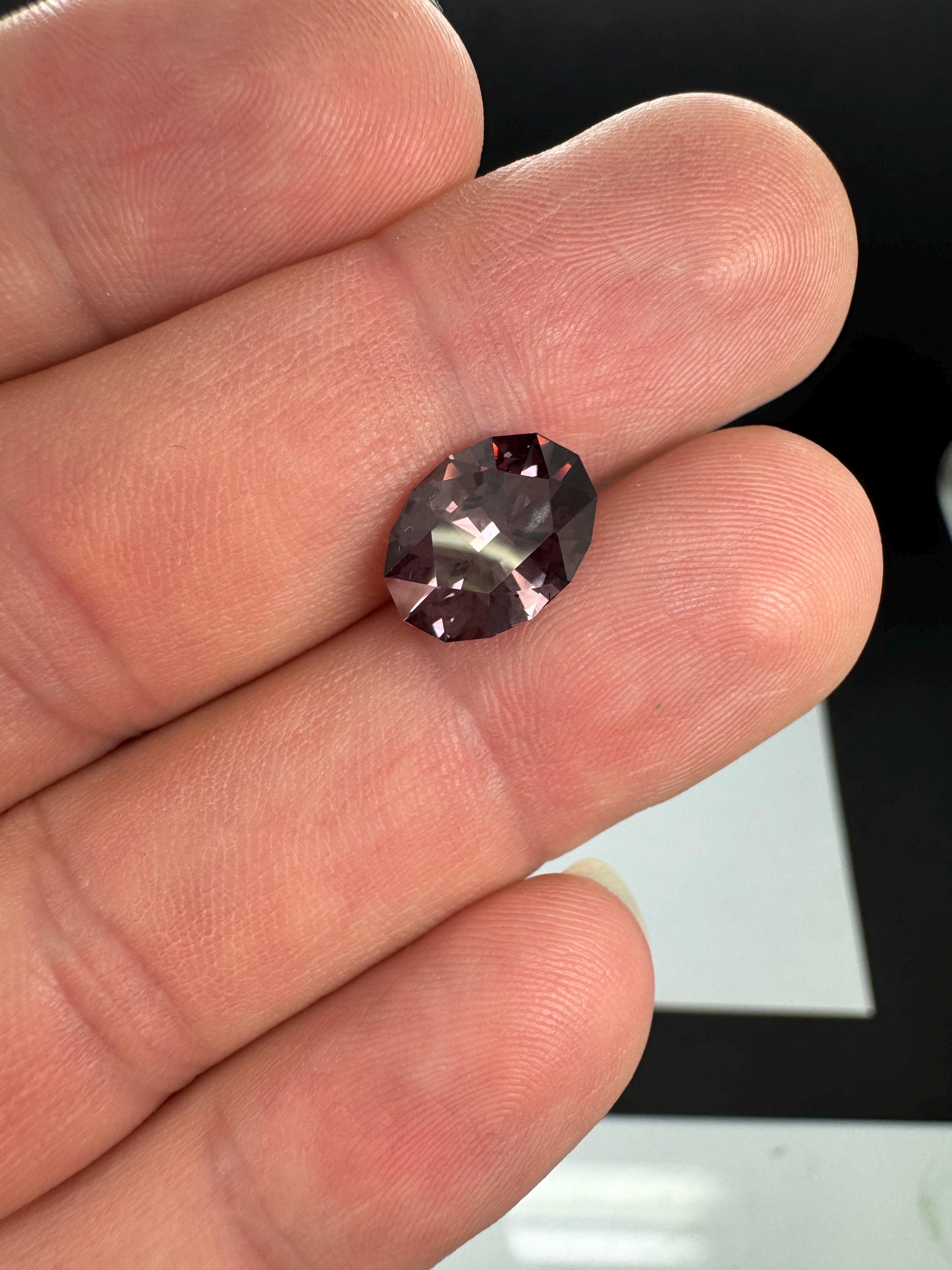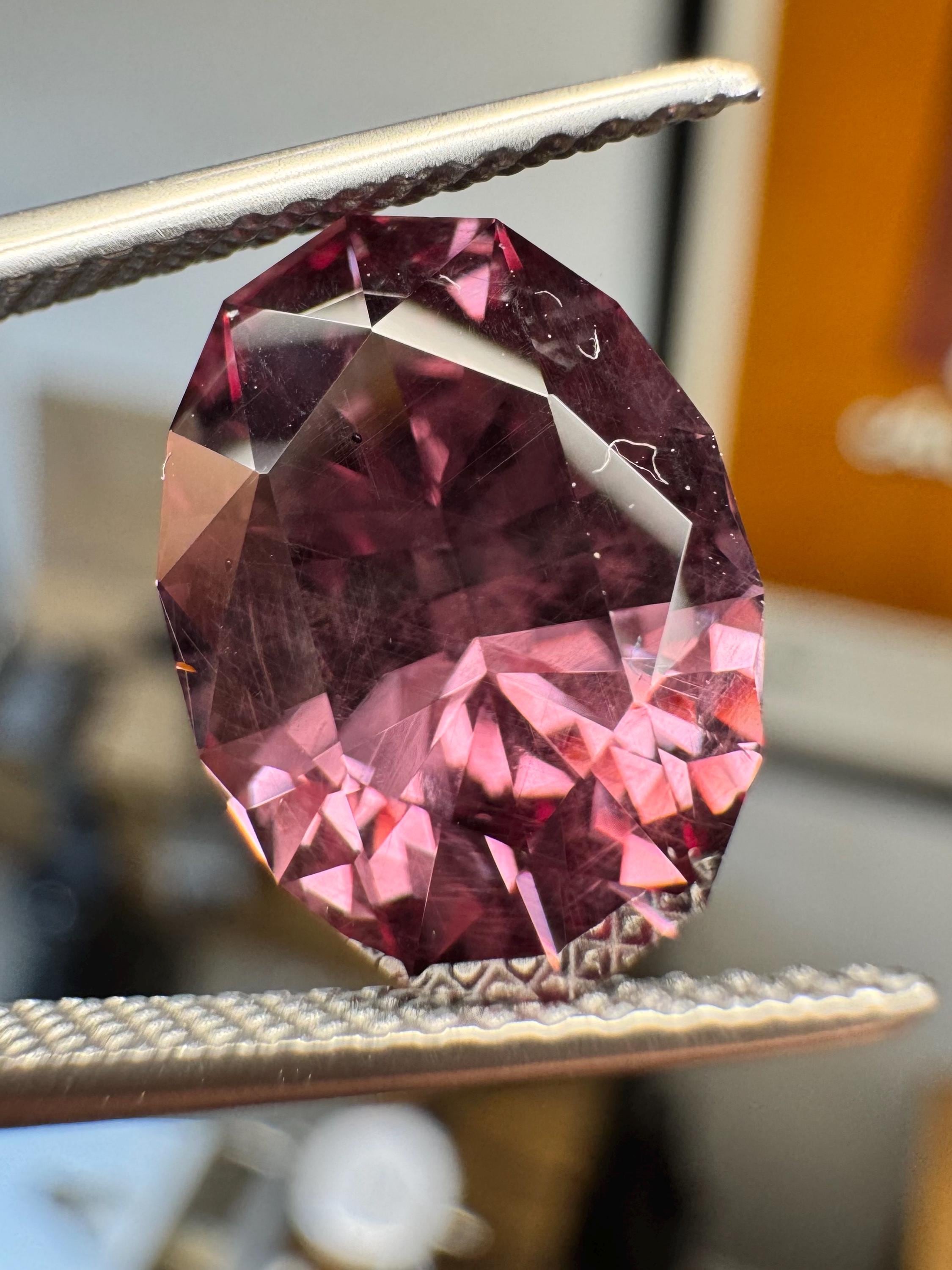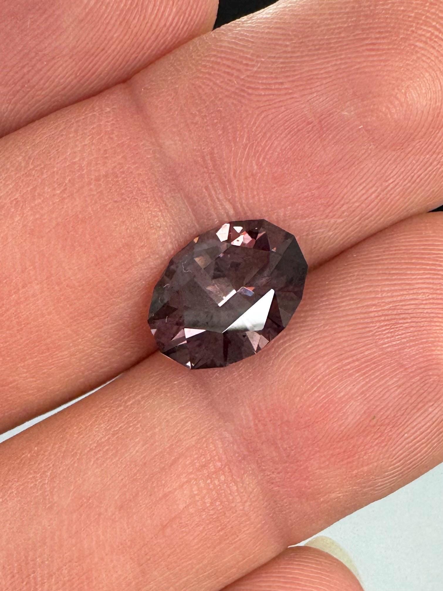 Wow this gem. A full color change Garnet in my precision cut oval. This stone changes from purple to pink with hints of blue. The only material I've seen of this is nearly always under a carat finished. It's a Tanzania origin stone with light silk inside that's not visible on the hand. A rare one.