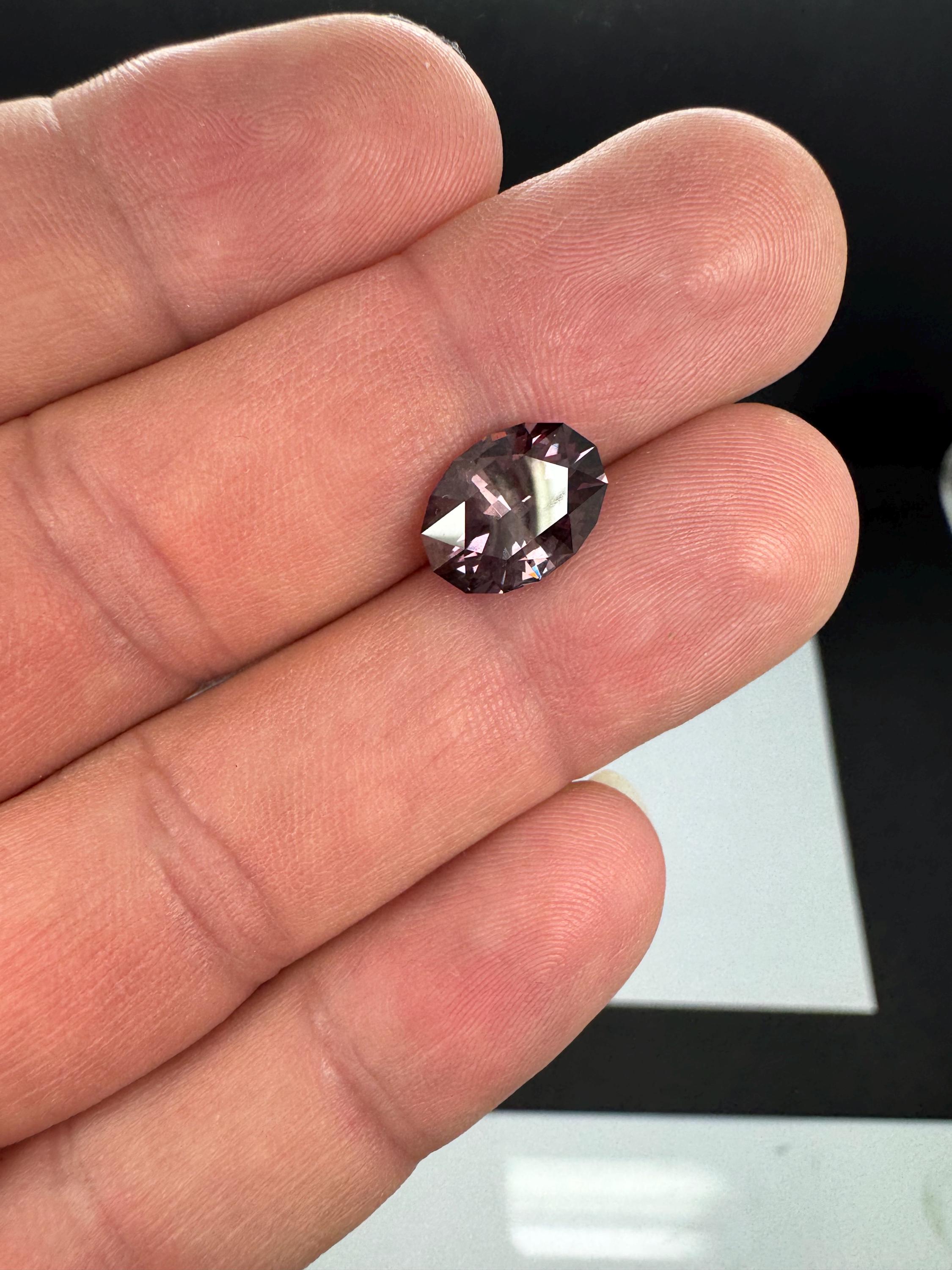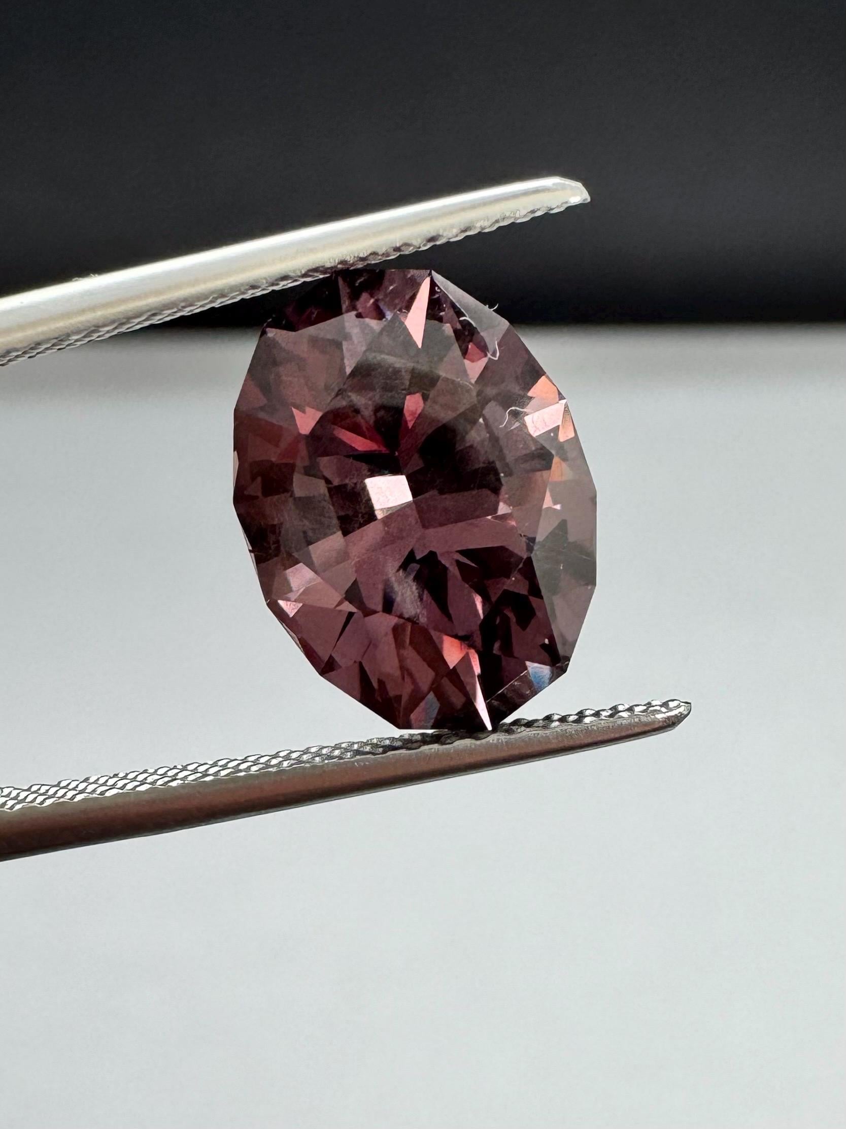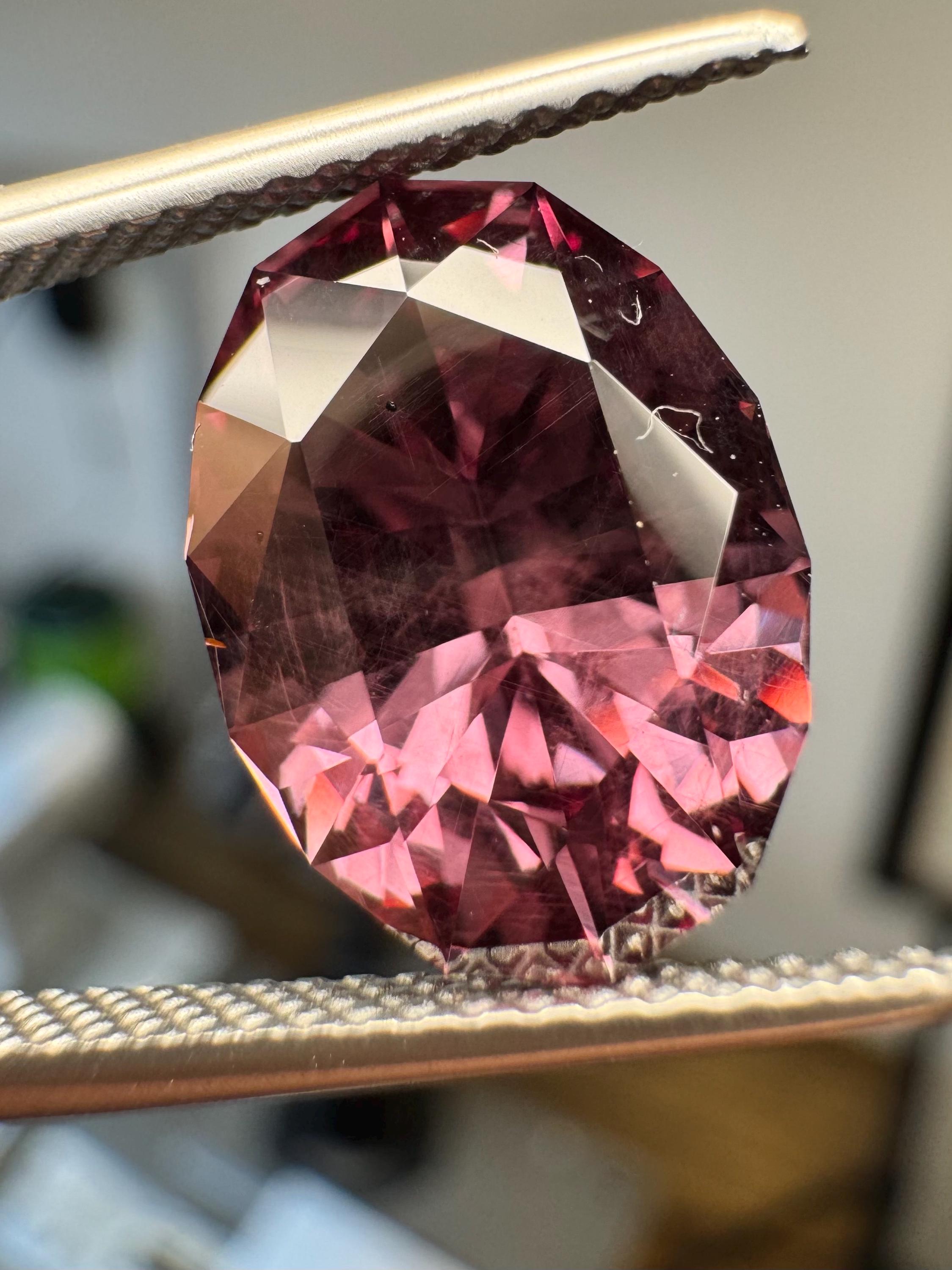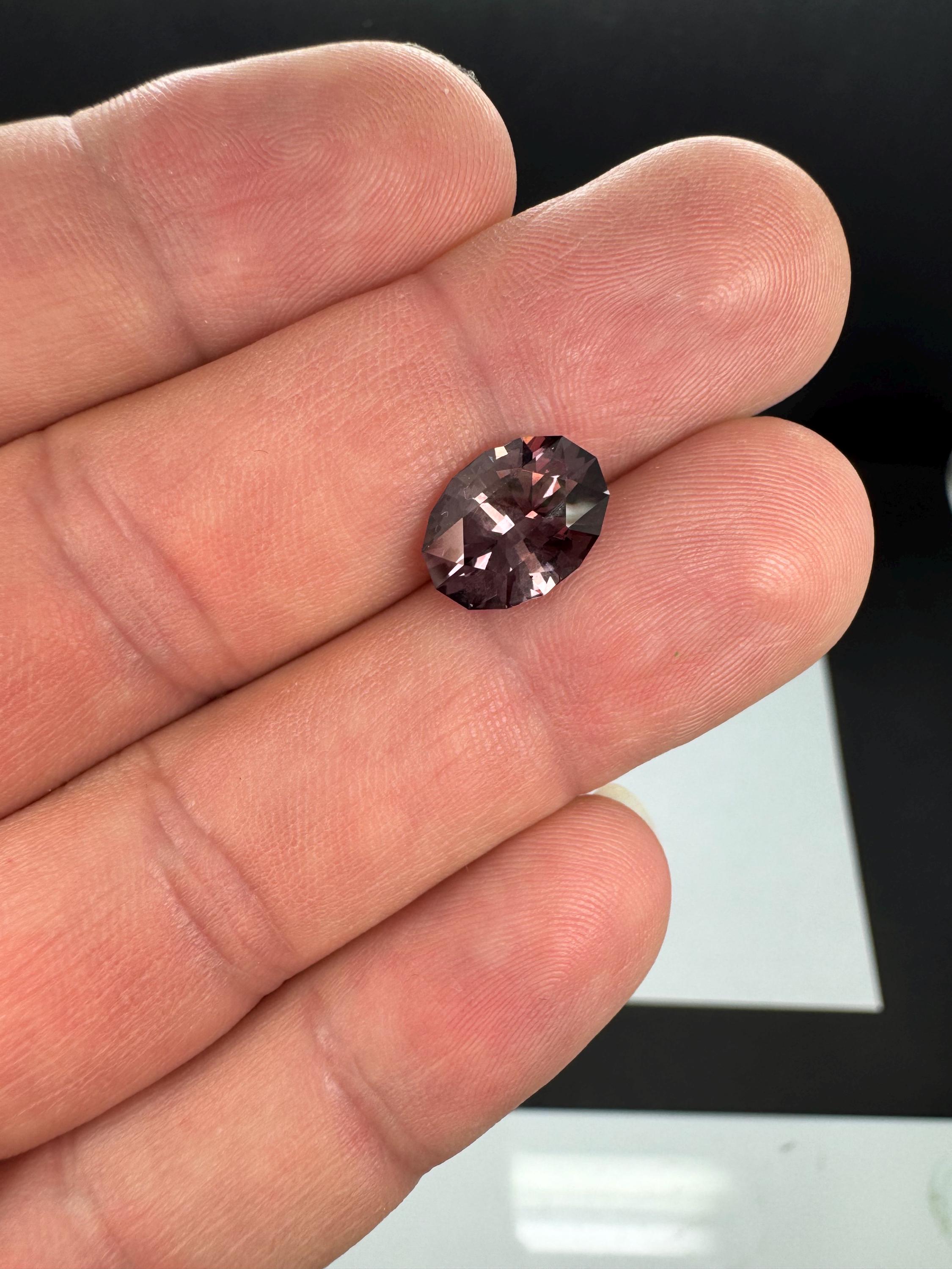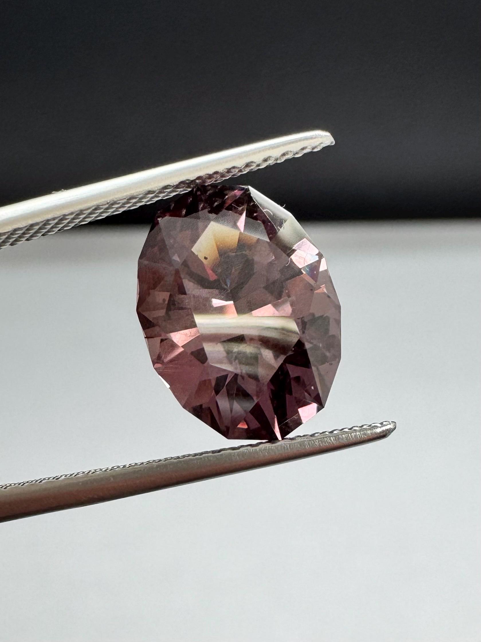 Wow this gem. A full color change Garnet in my precision cut oval. This stone changes from purple to pink with hints of blue. The only material I've seen of this is nearly always under a carat finished. It's a Tanzania origin stone with light silk inside that's not visible on the hand. A rare one.