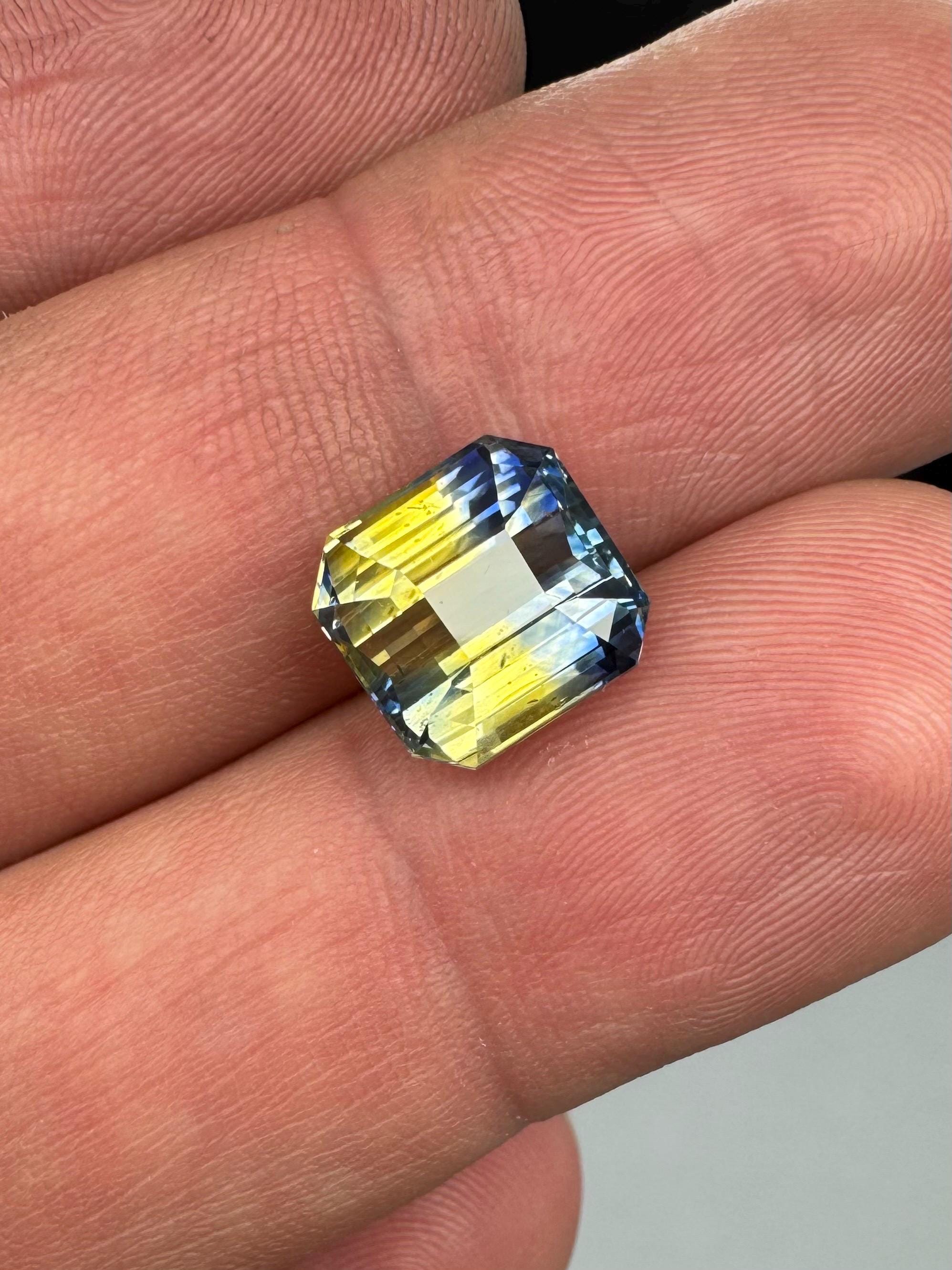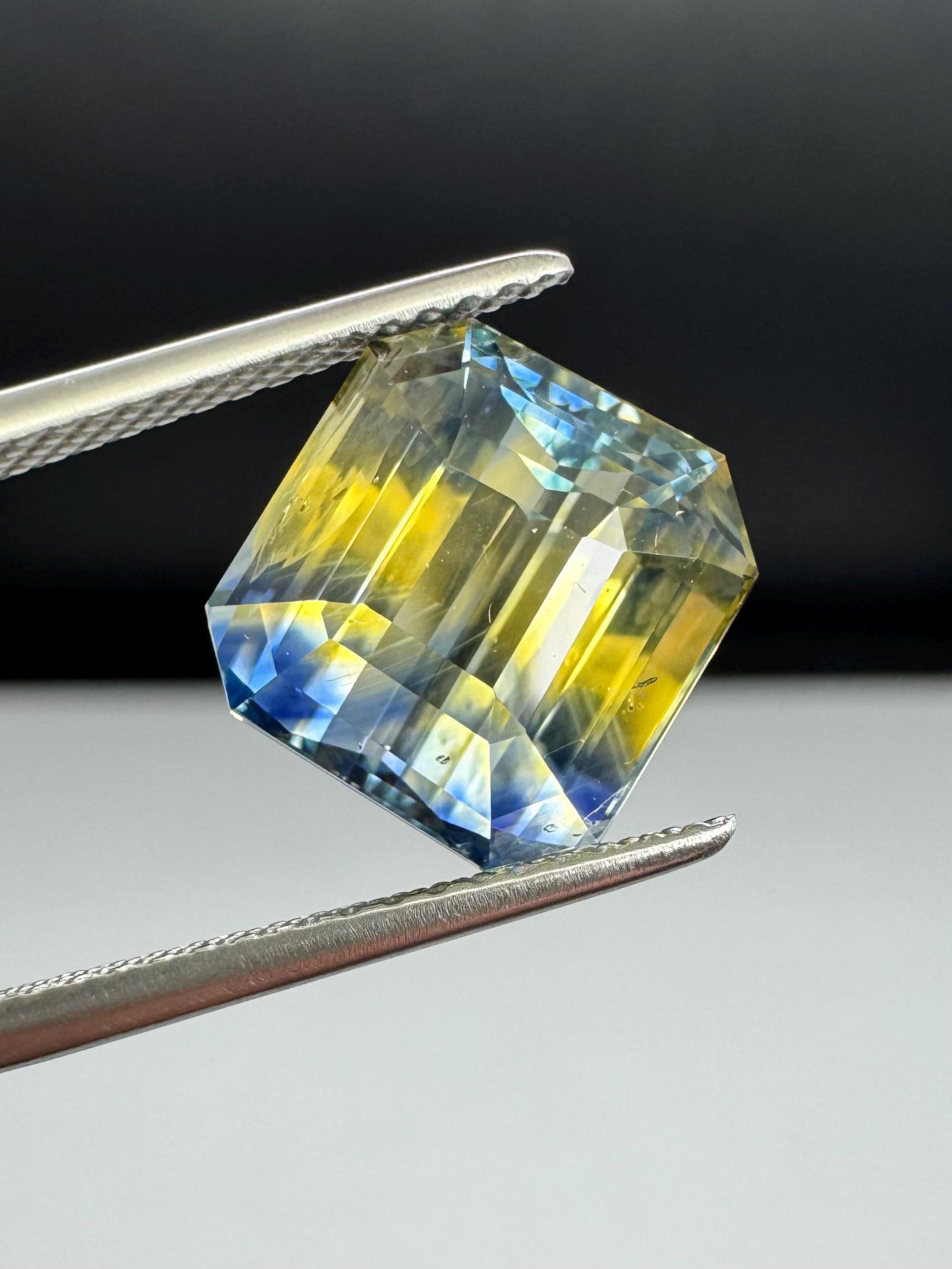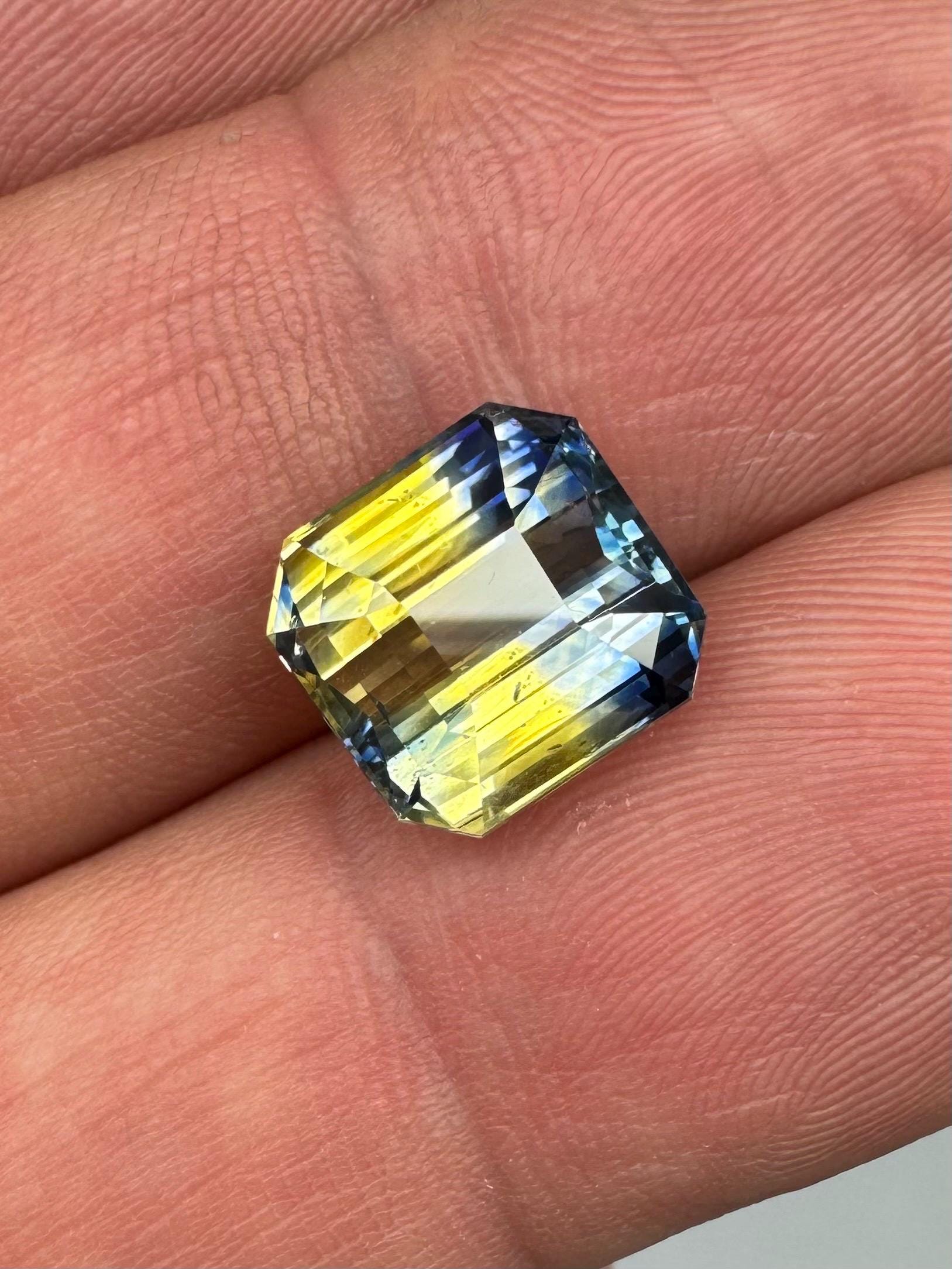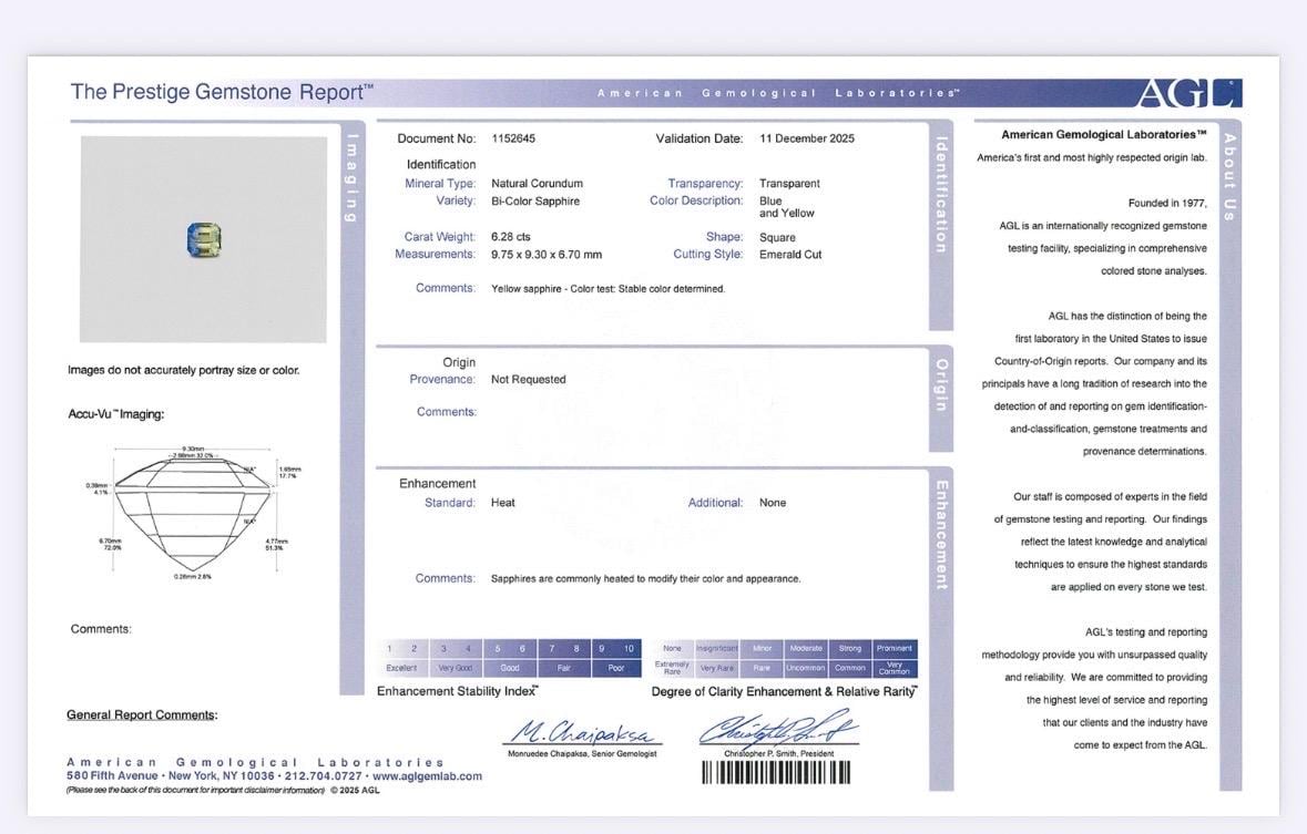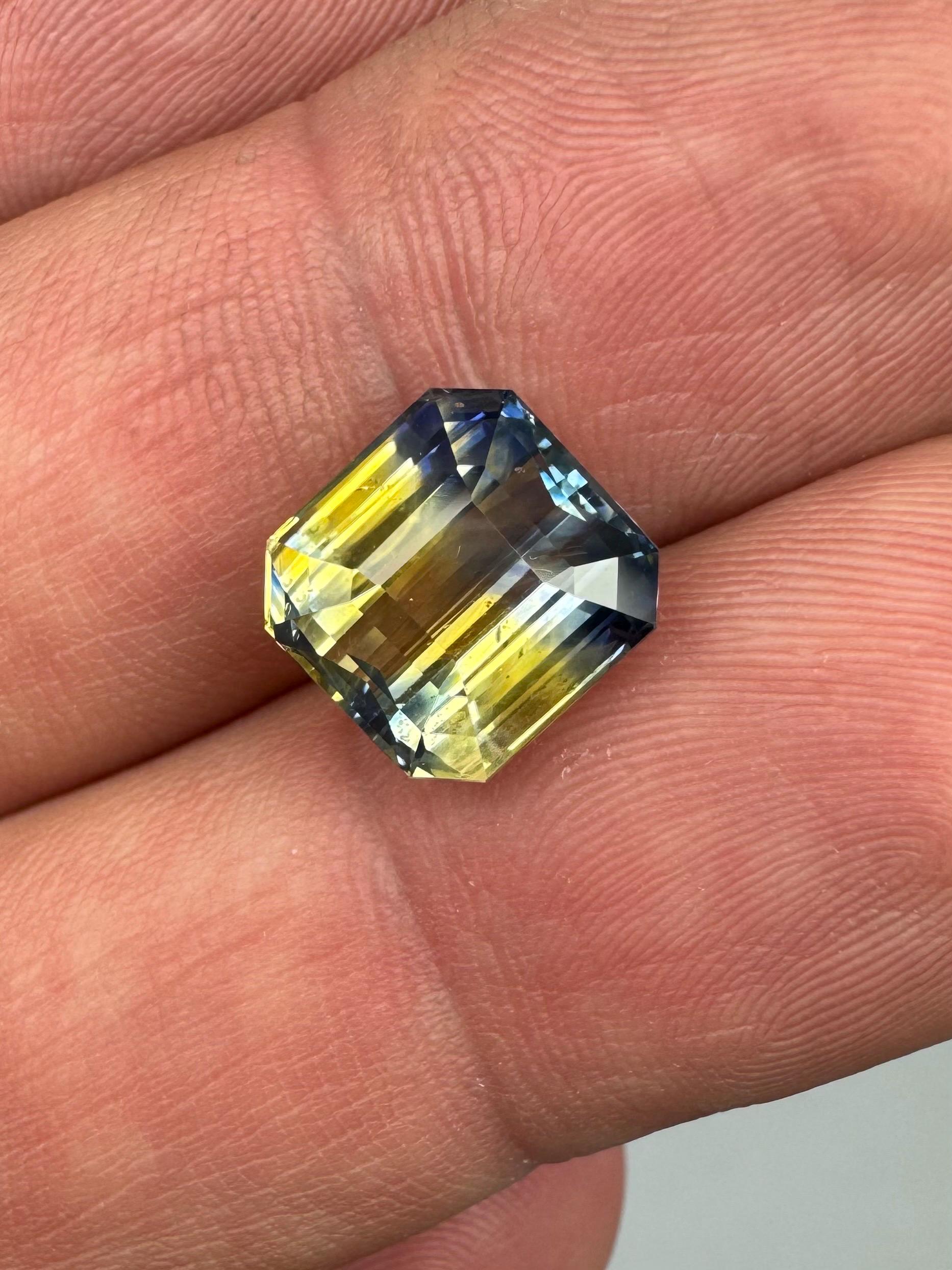 Natural bi color sapphire. Very vivid colors with an AGL lab report. Heat only treatment.