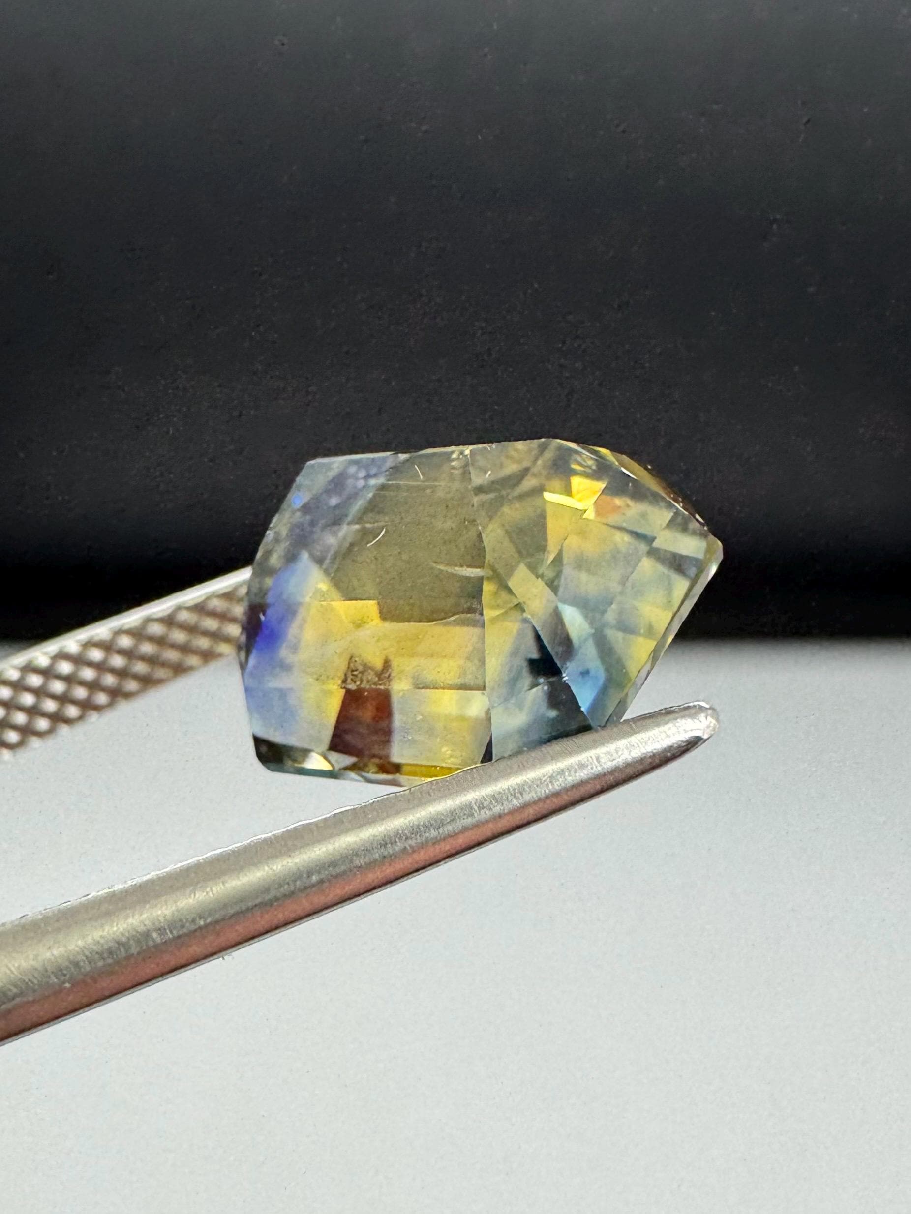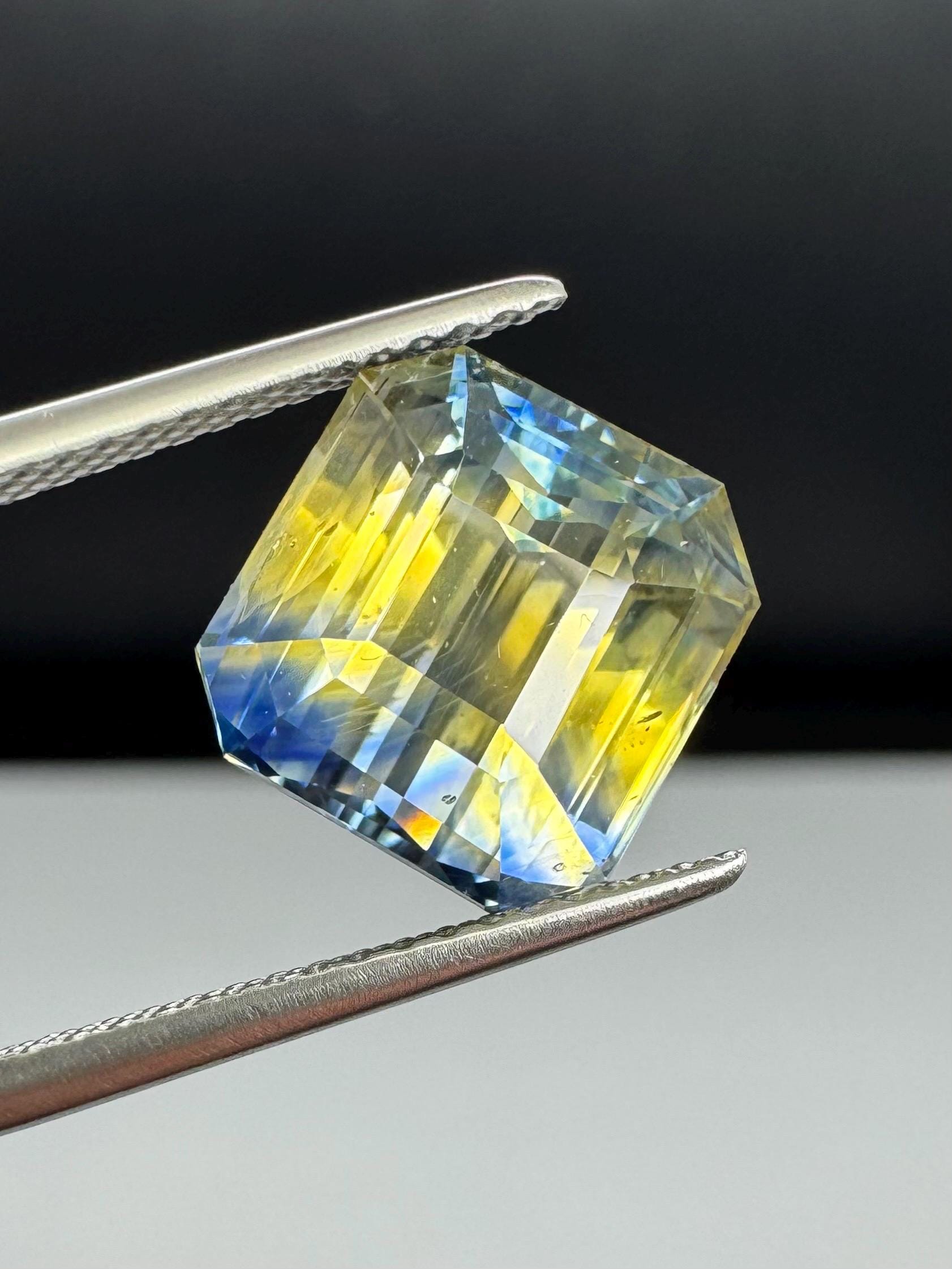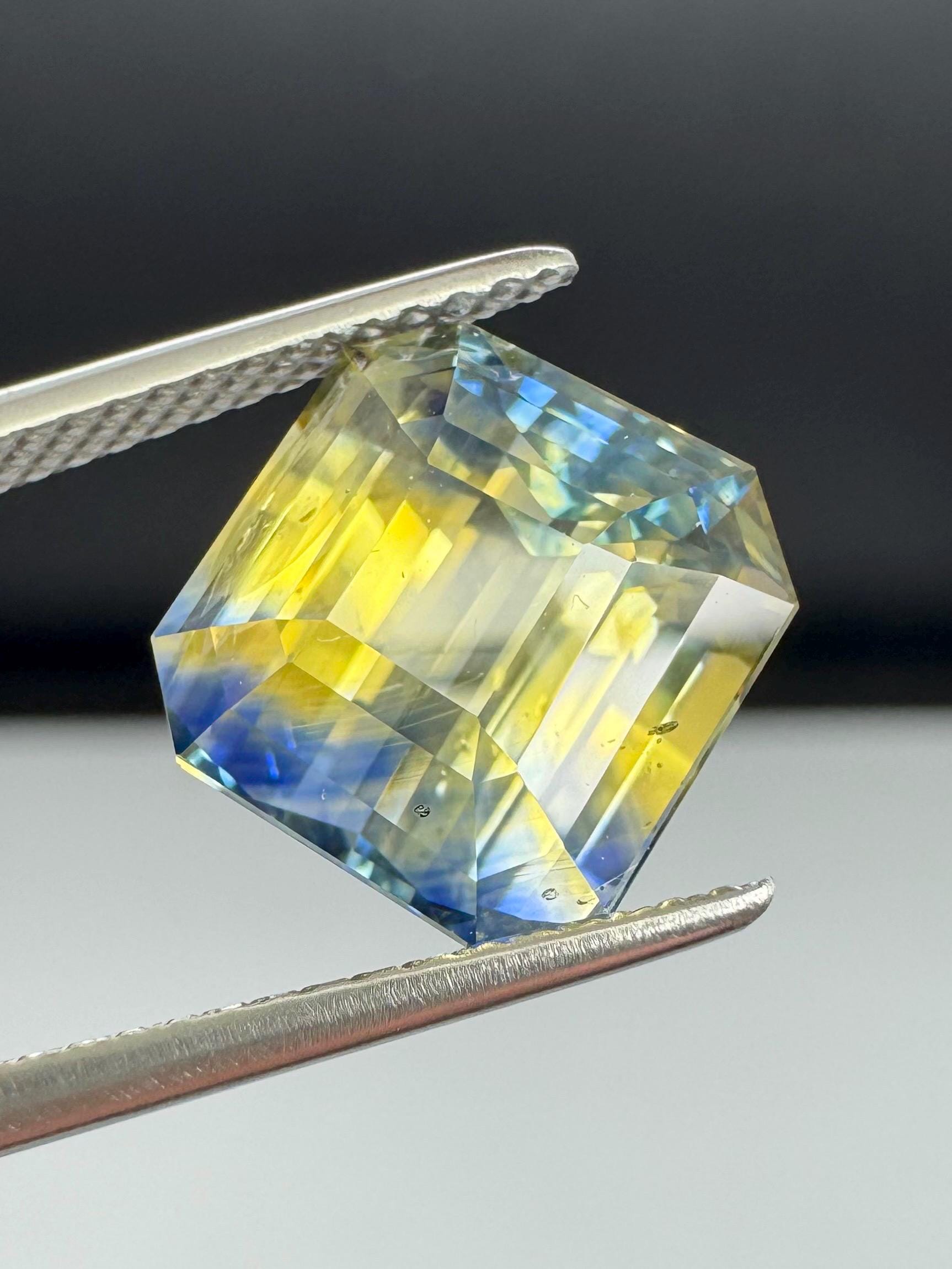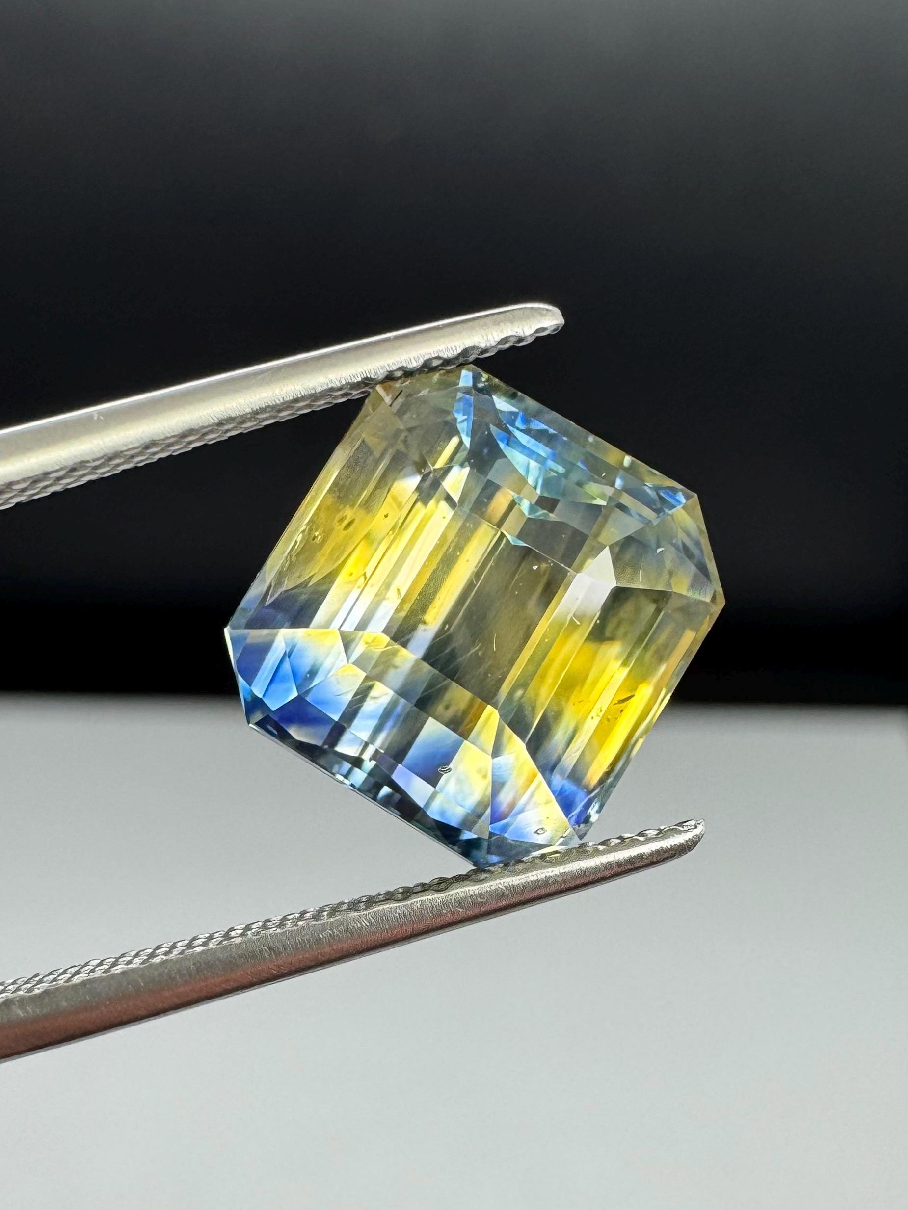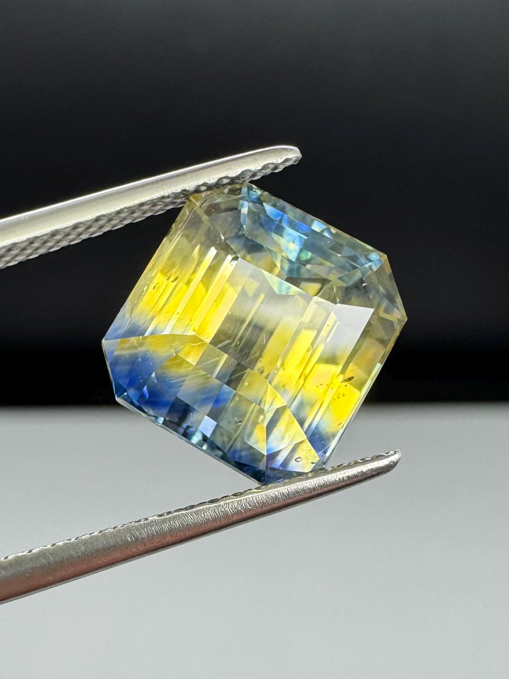 Natural bi color sapphire. Very vivid colors with an AGL lab report. Heat only treatment.